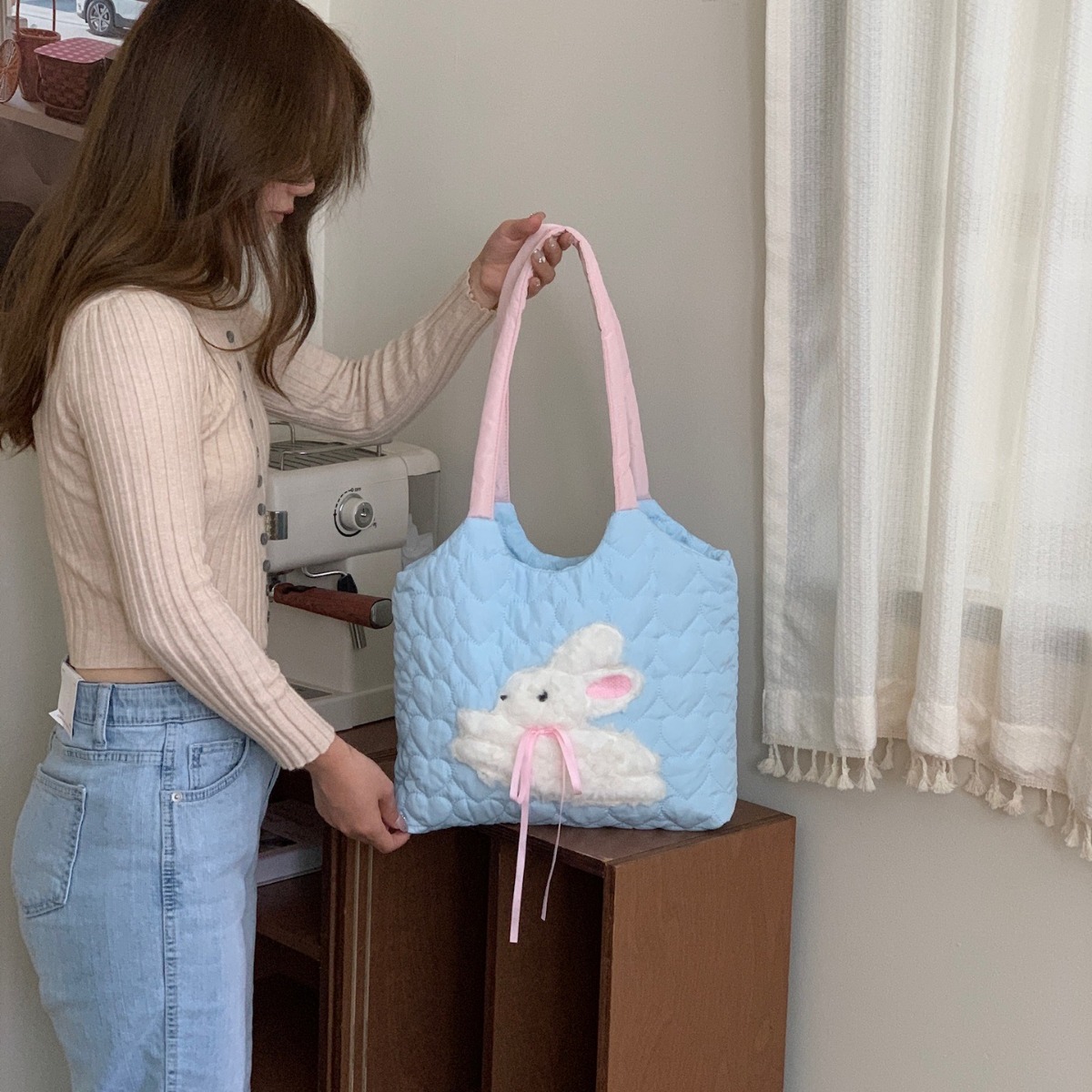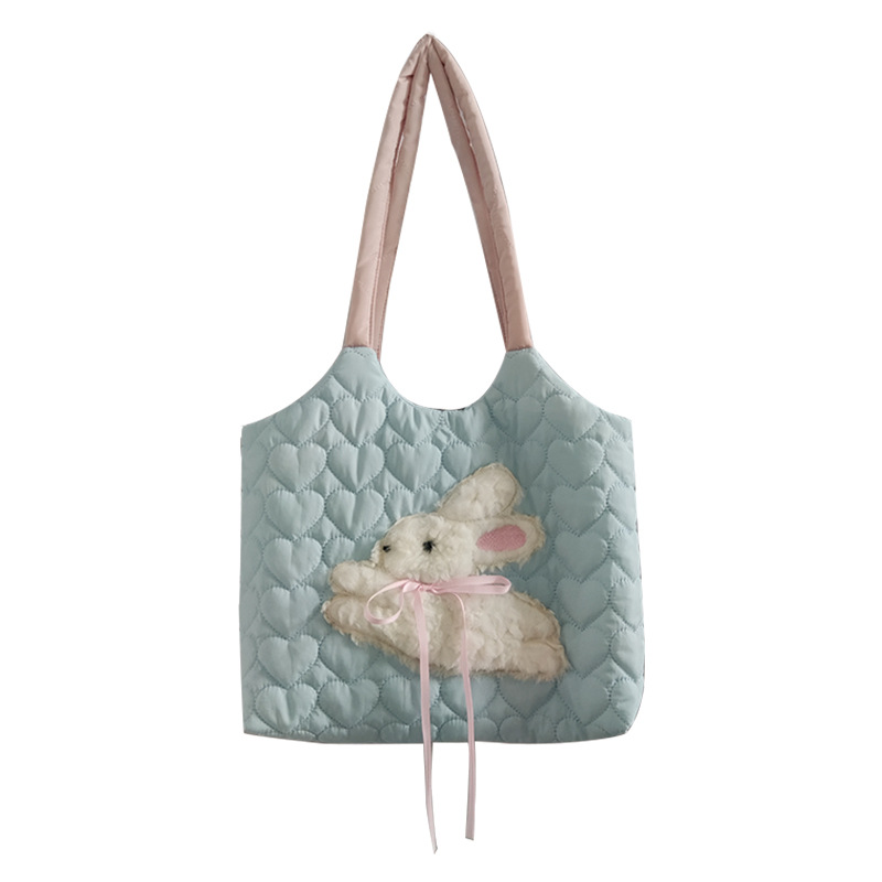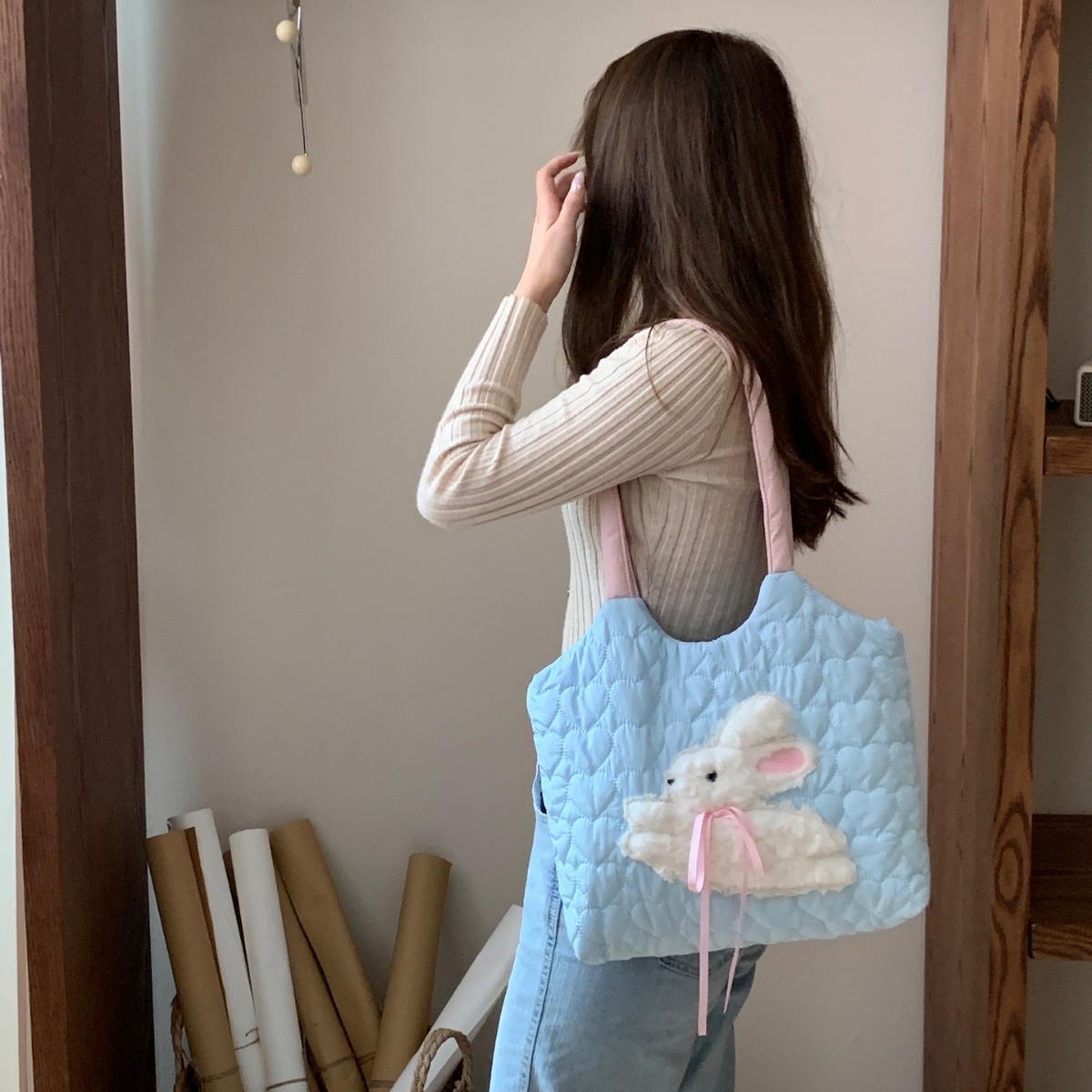 新款绗棉背心包可爱毛绒兔子单肩包休闲大容量上班通勤托特包