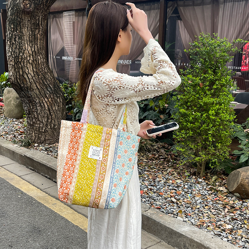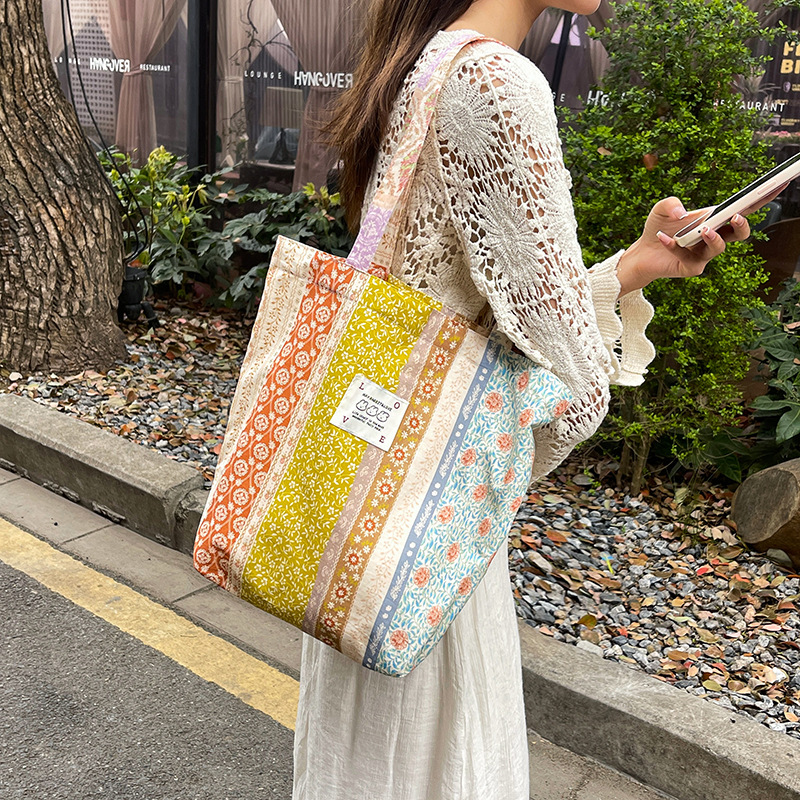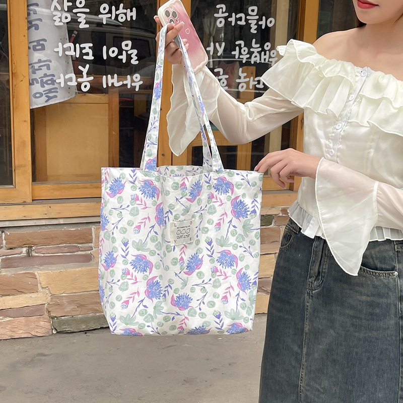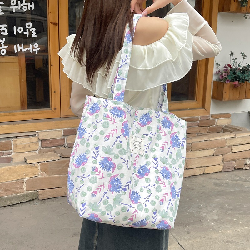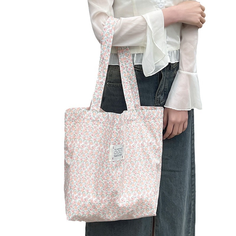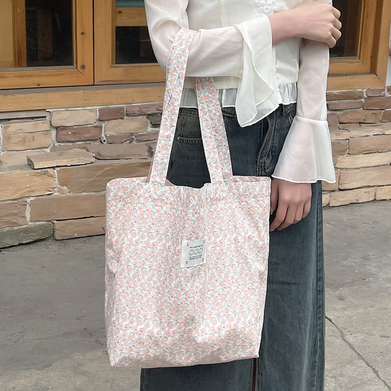 新款韩国ins碎花单肩布艺包包大容量帆布包学生上课包文艺手提袋