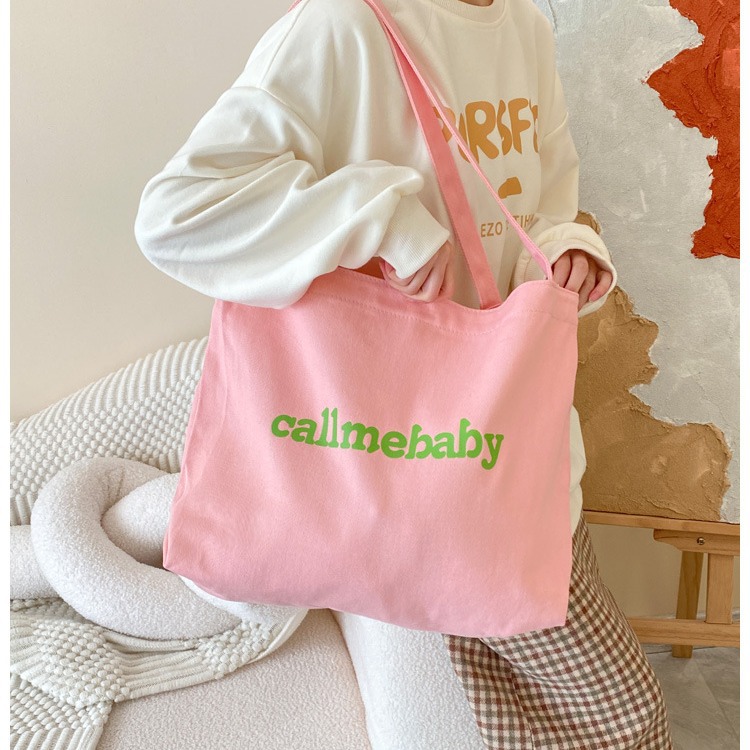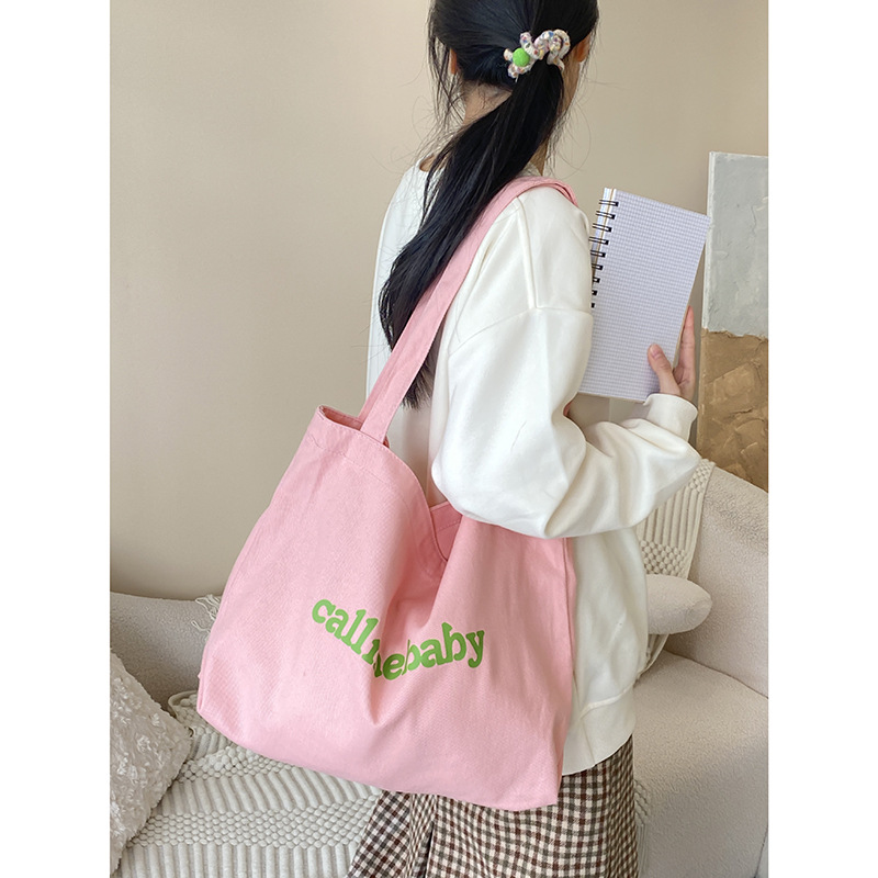 多巴胺色系高级感帆布包百搭大容量简约托特包日系便携手拎包