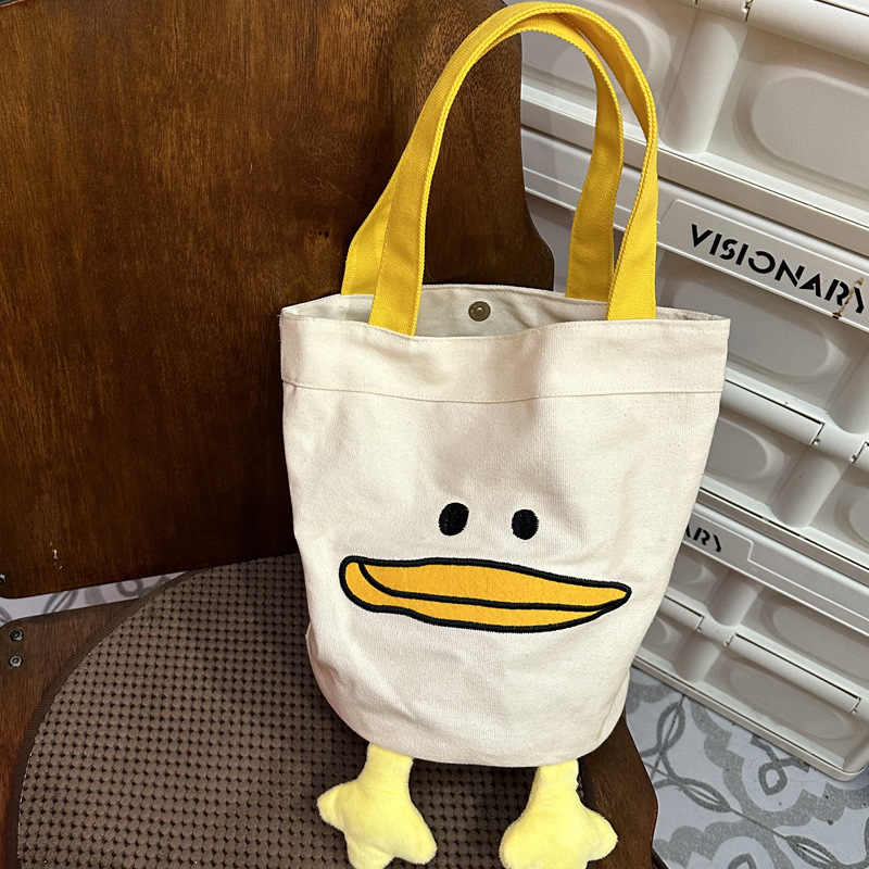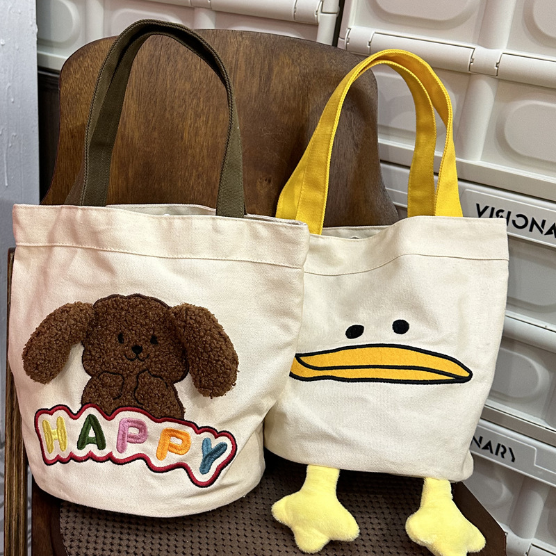 新款可爱卡通刺绣手提包上班通勤帆布包学生上班便当包