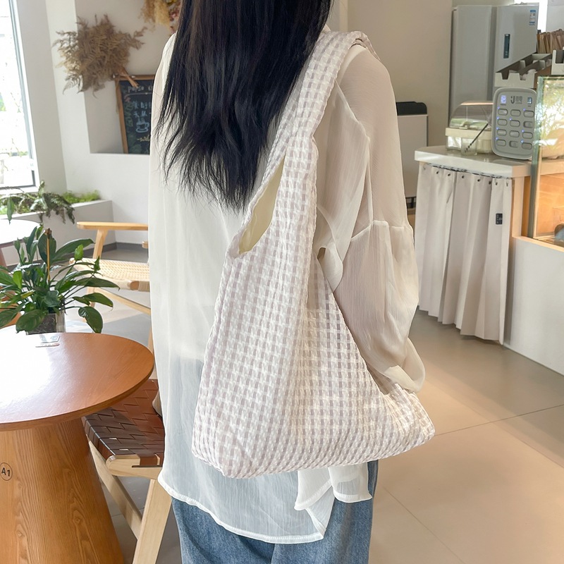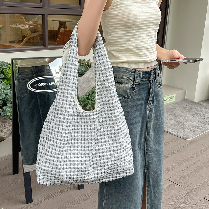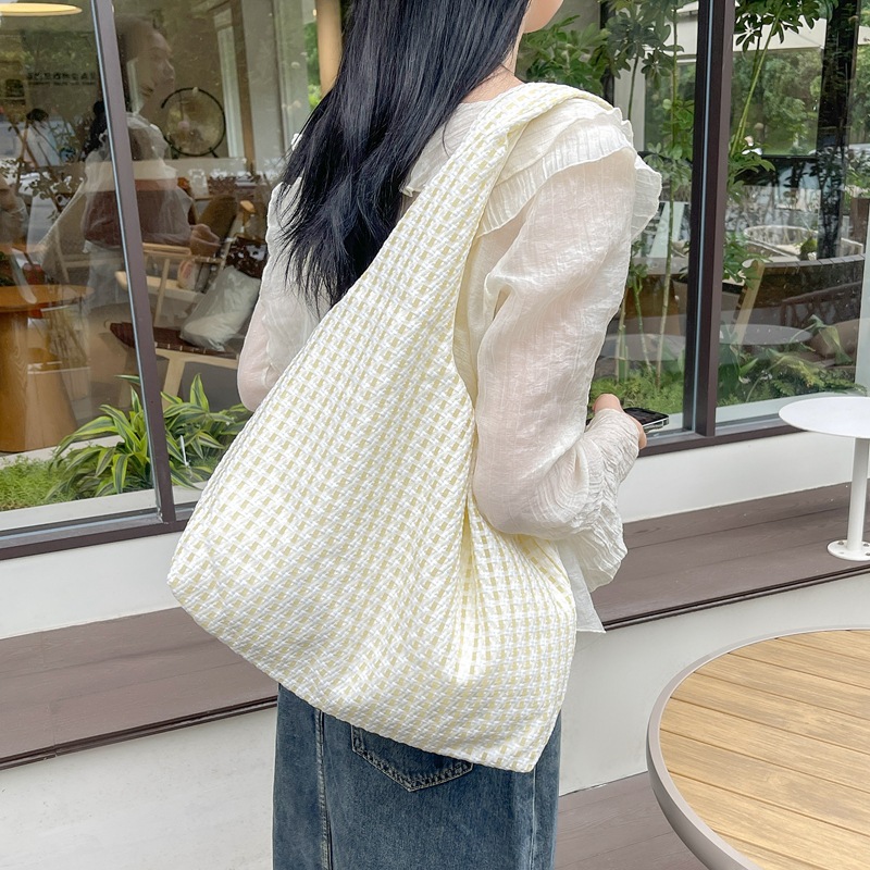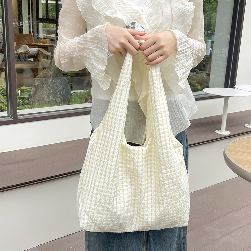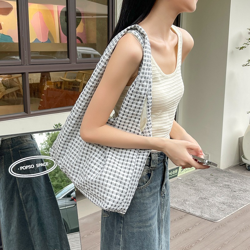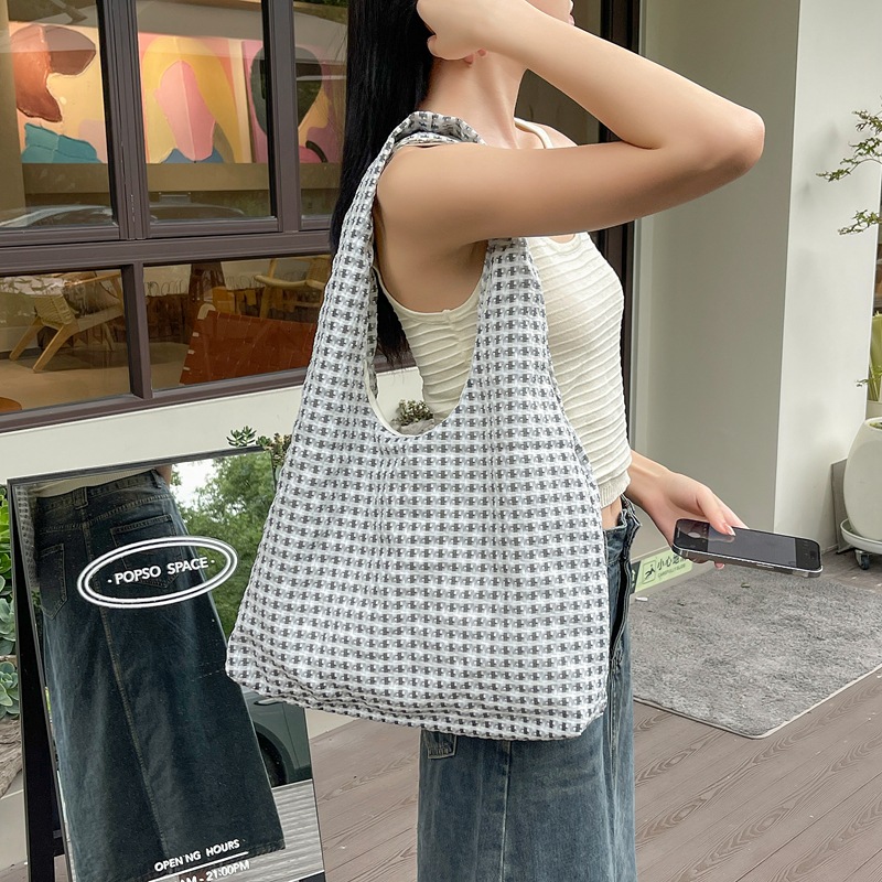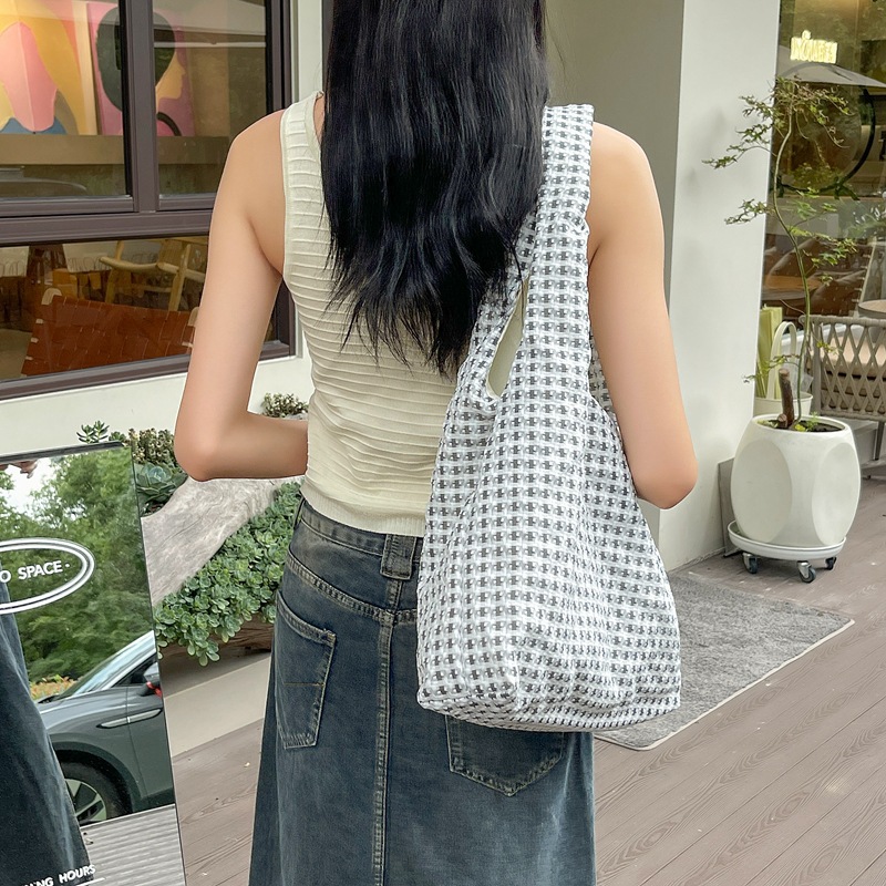 新款文艺气质女士腋下包包ins高级感帆布包时尚大容量格子单肩包