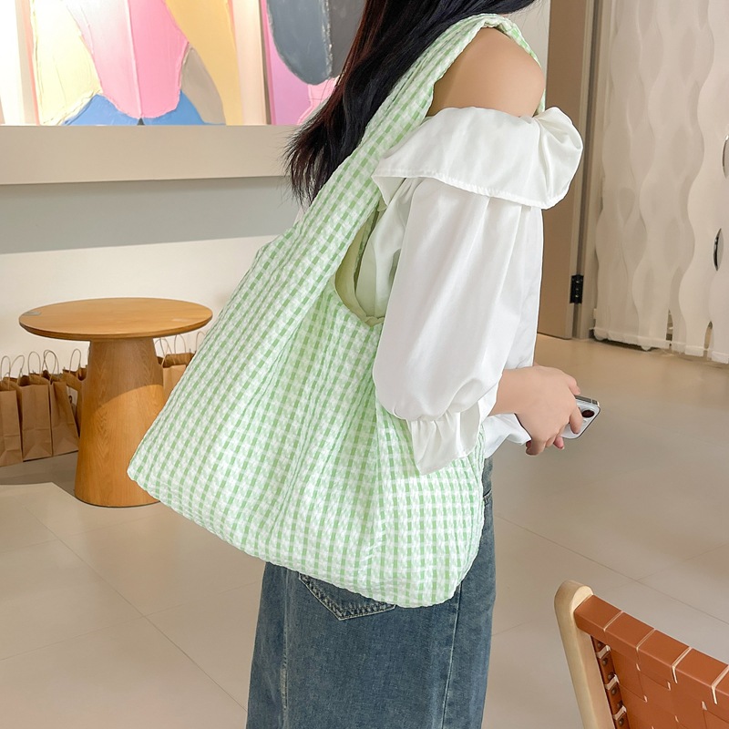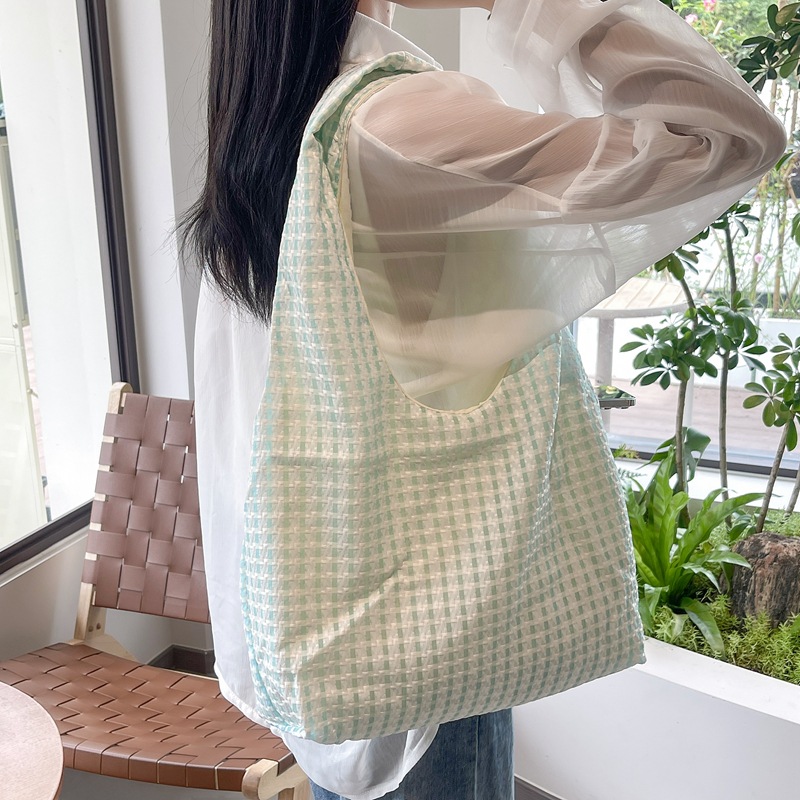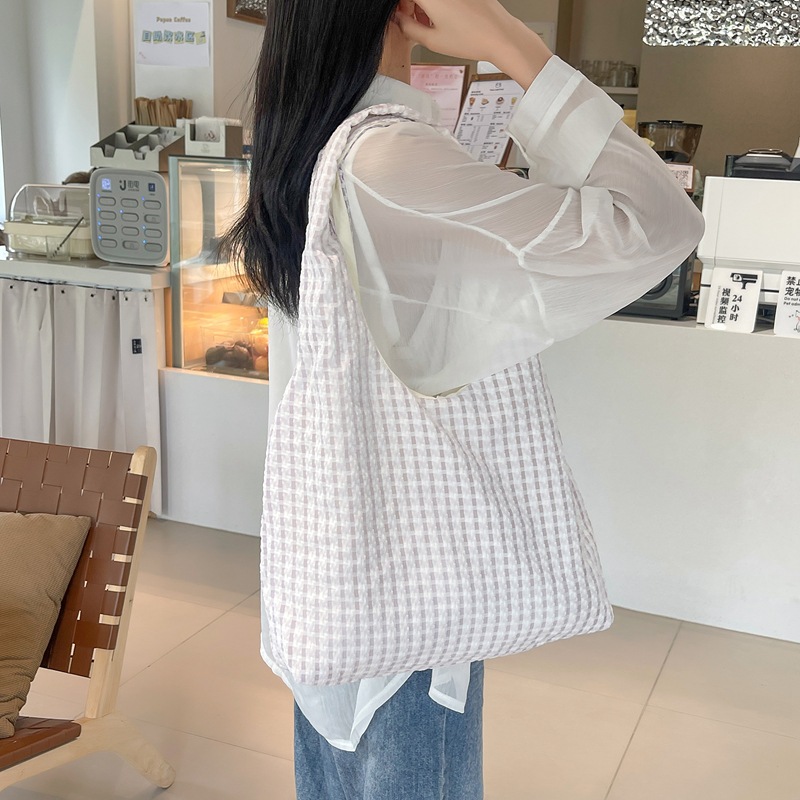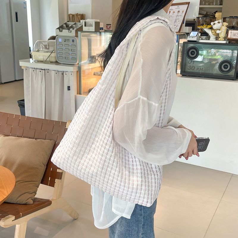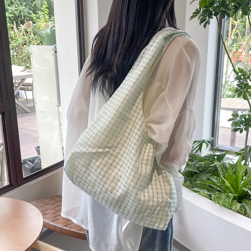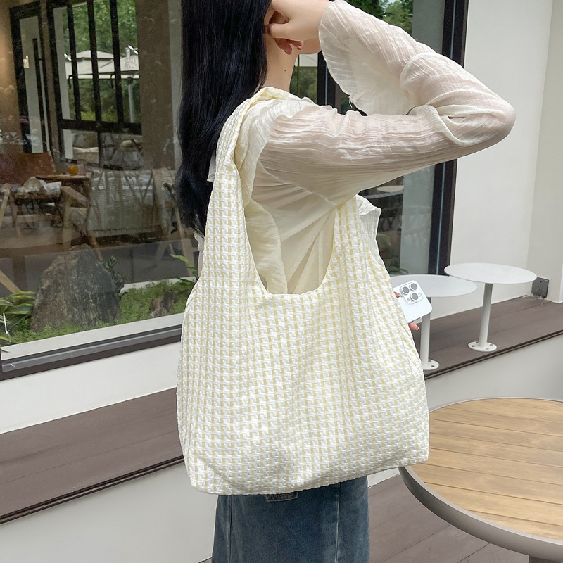 新款文艺气质女士腋下包包ins高级感帆布包时尚大容量格子单肩包