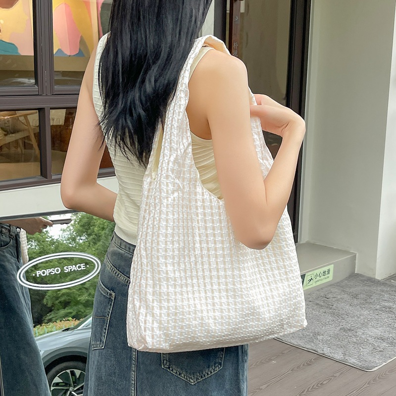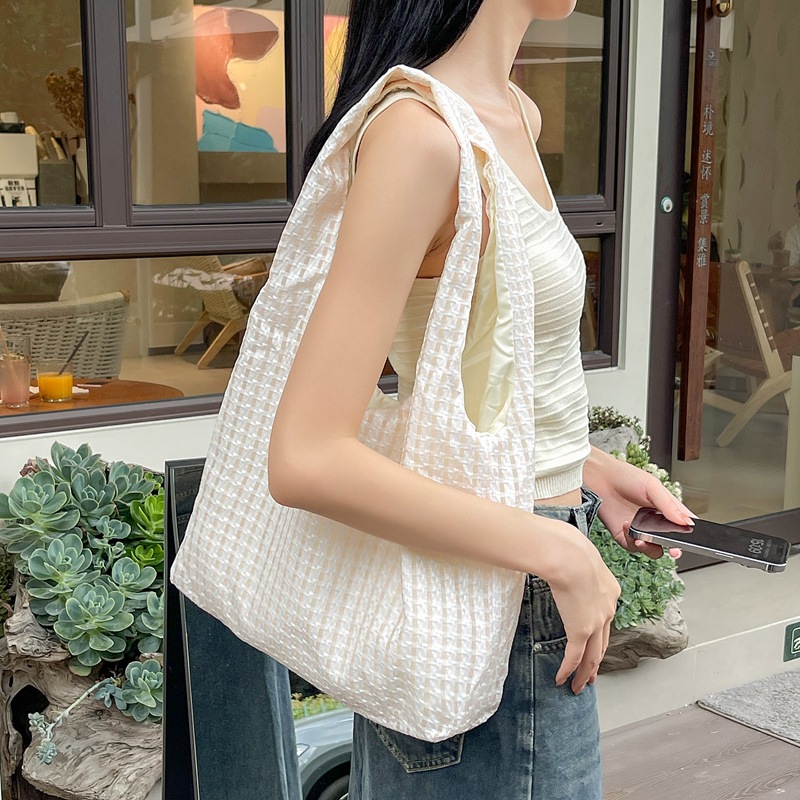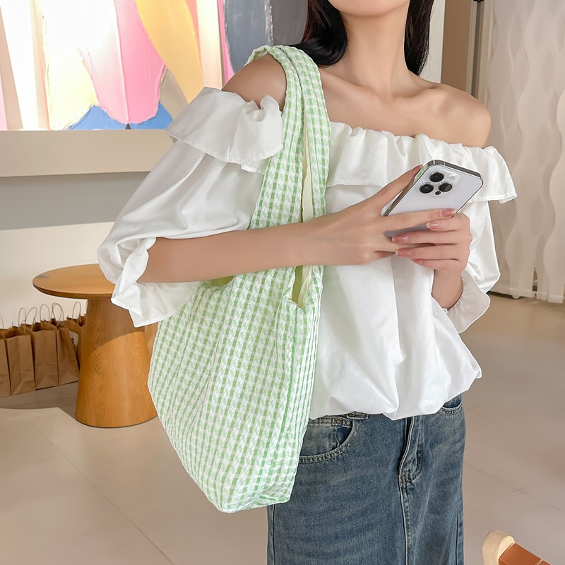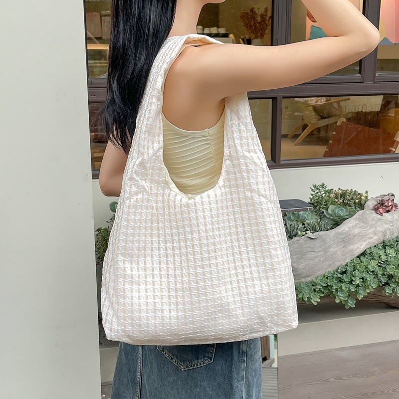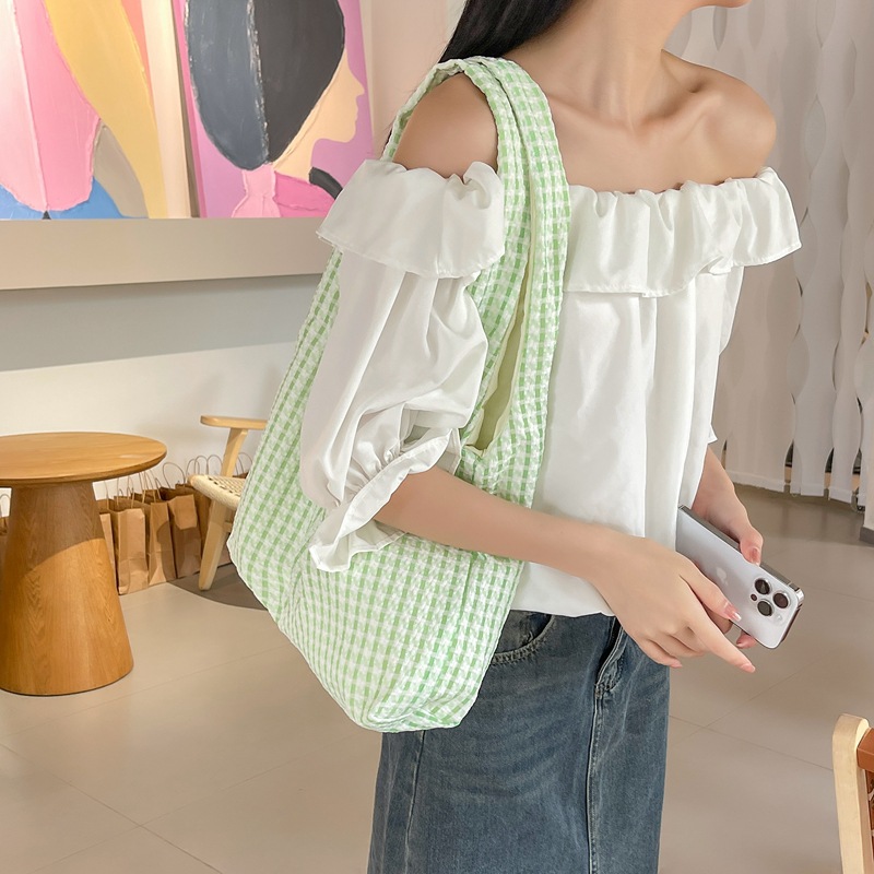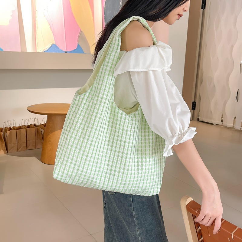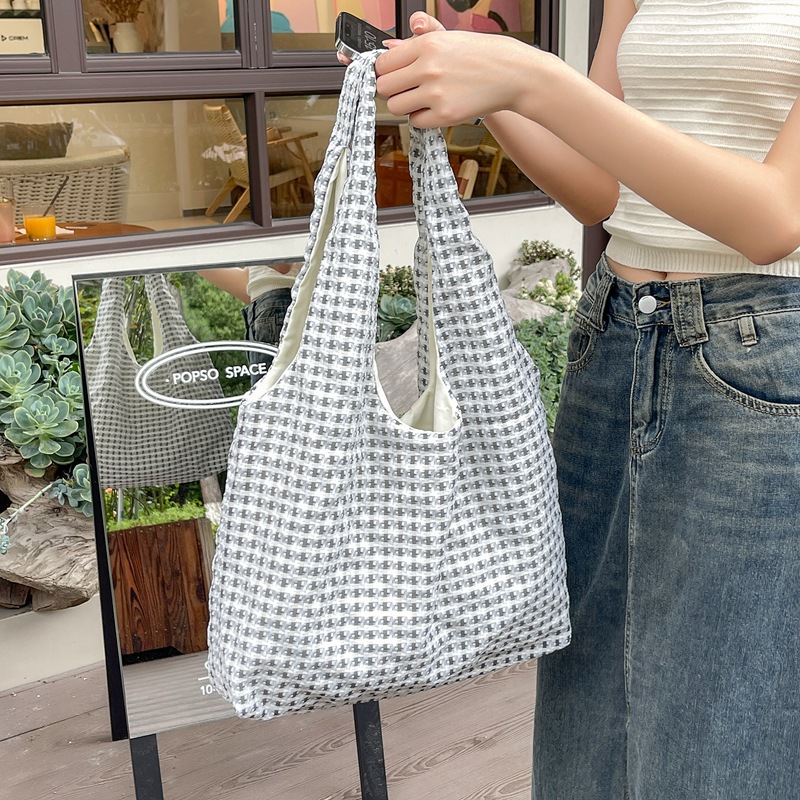 新款文艺气质女士腋下包包ins高级感帆布包时尚大容量格子单肩包