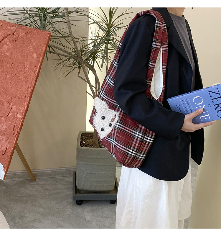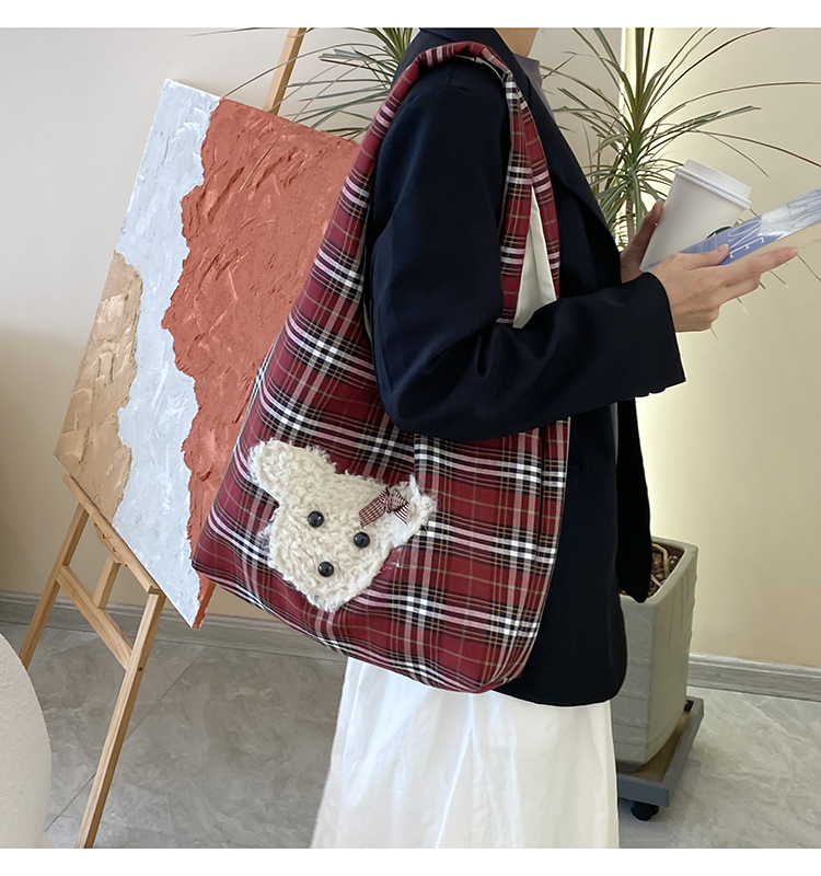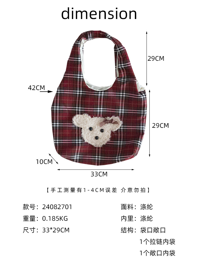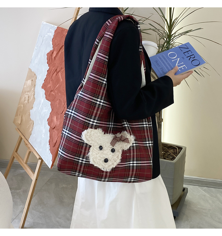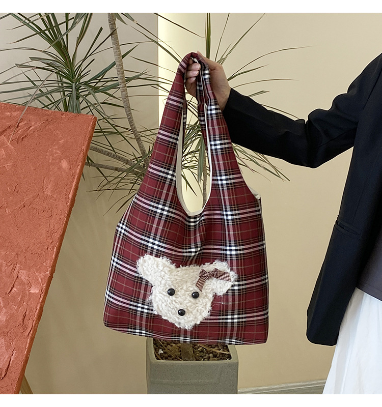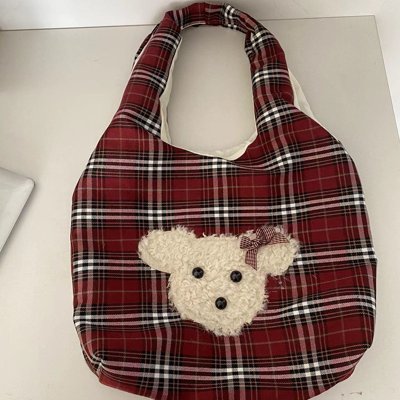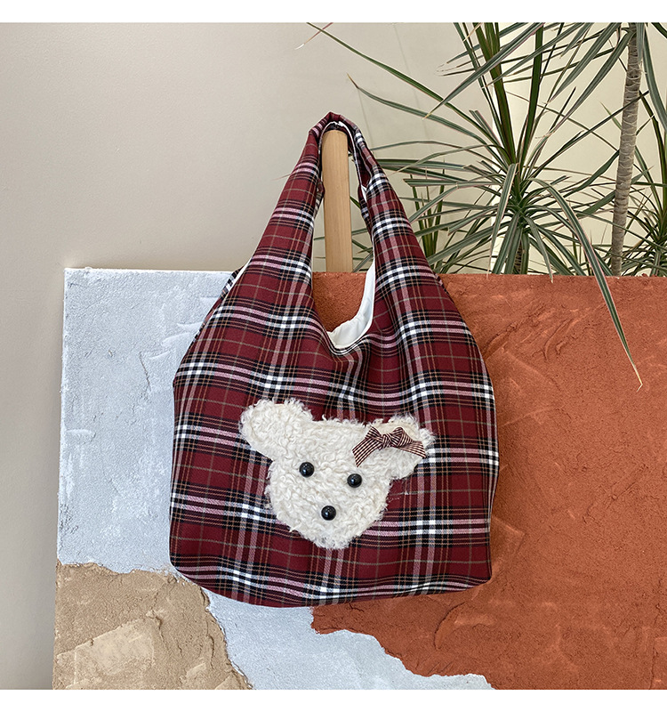 小熊酒红格子大容量