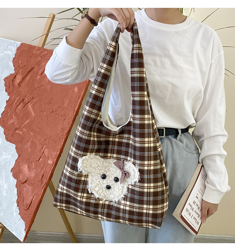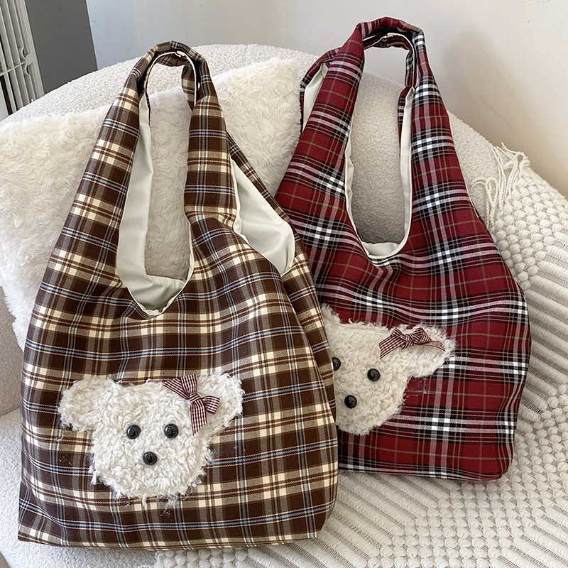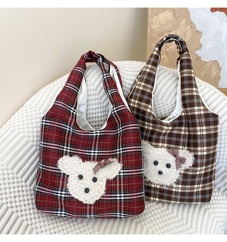 小熊棕格子大容量