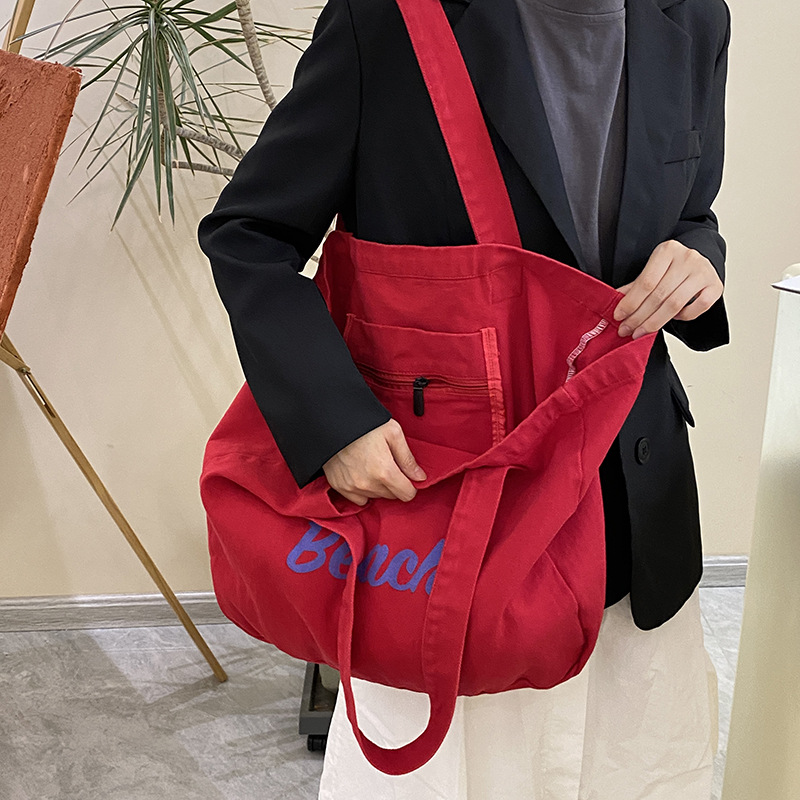 新款字母印花帆布包大容量百搭女士单肩包时尚休闲学生通勤托特包