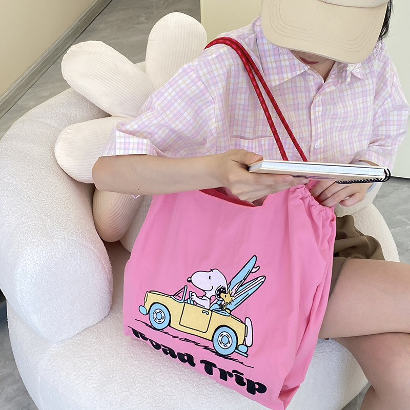 网红同款史努比多巴胺卡通新款学生单肩包包女刺绣大容量托特包