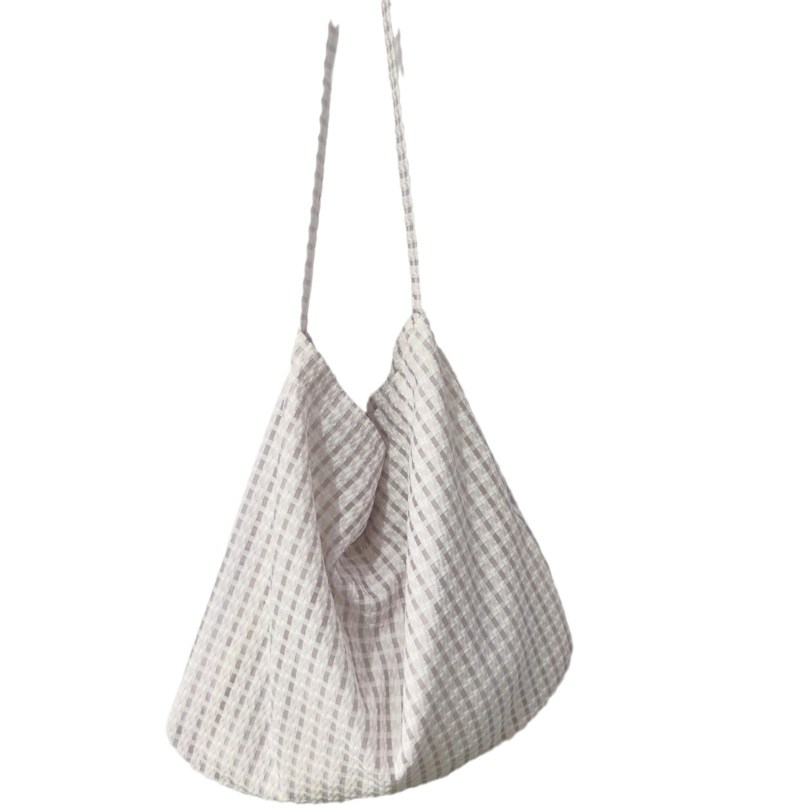 夏季新款千鸟格单肩包文艺气质女士斜挎帆布包包大容量托特包