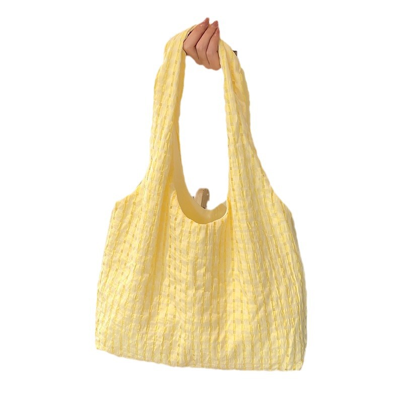 夏季爆款清爽镂空格子背心包高品质帆布单肩包小清新大容量腋下包