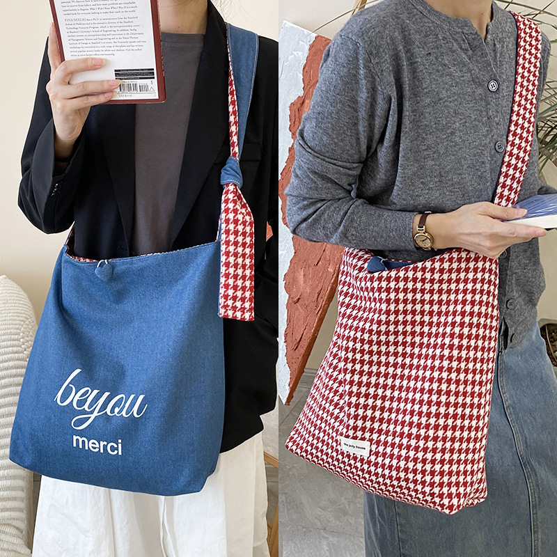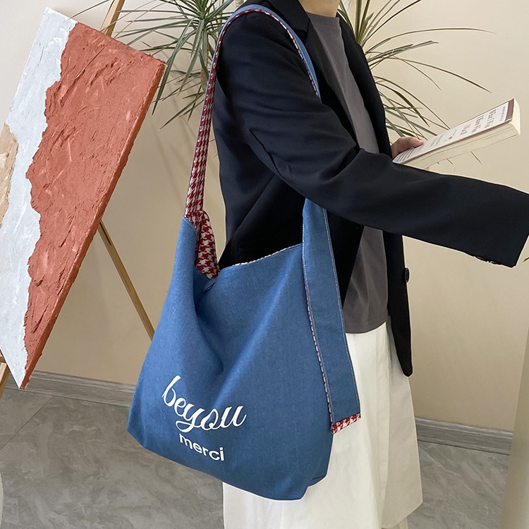 原创法式清新字母帆布包大容量单肩包轻便购物袋