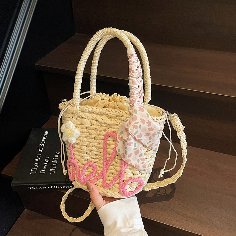 草编包2025新款时尚字母编织女包流行斜挎包女洋气ins手提菜篮子