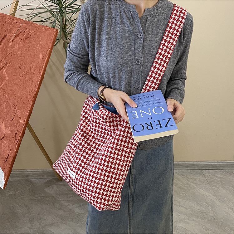 超火大容量包包女新款可爱腊肠狗格子单肩包秋冬百搭托特包