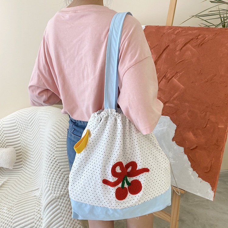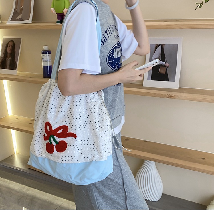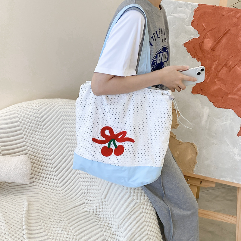 新款小众大容量女士单肩包时尚拼接波点手提帆布包法式百搭托特包