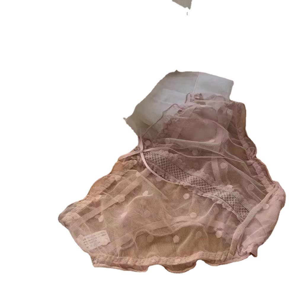 小心机少女心爆棚性感甜美蕾丝内裤女士中腰半透明日系圆点三角裤