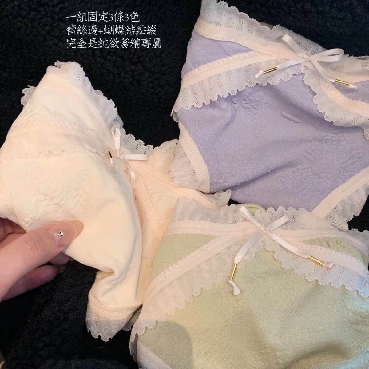 METWO提花棉原单性感舒适透气蕾丝边提臀无痕少女纯棉裆中腰内裤