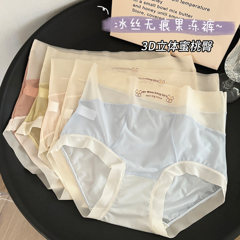 亿涵梦冰丝无痕纯棉档3D立体蜜桃臀轻薄裸感舒适亲肤中腰内裤法式