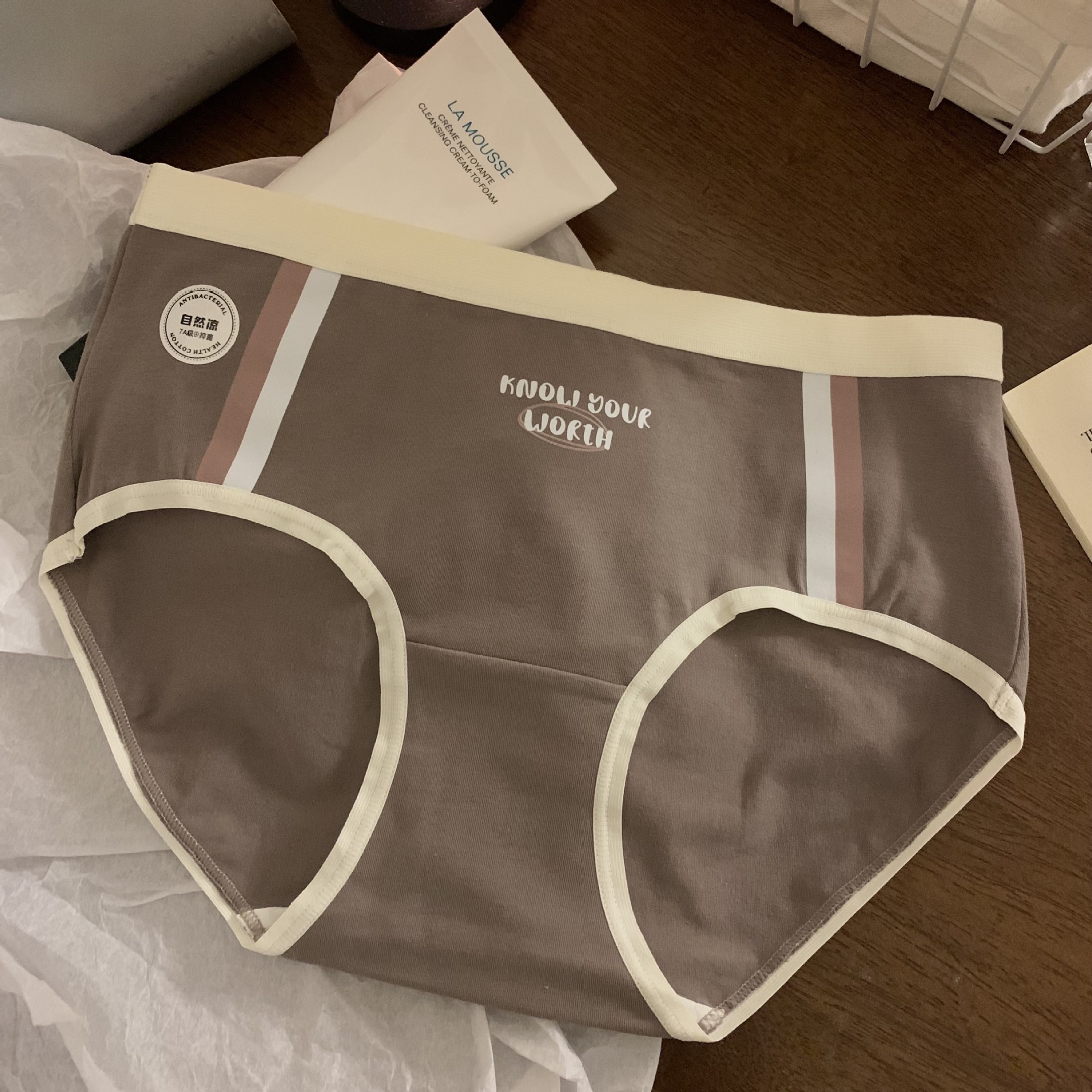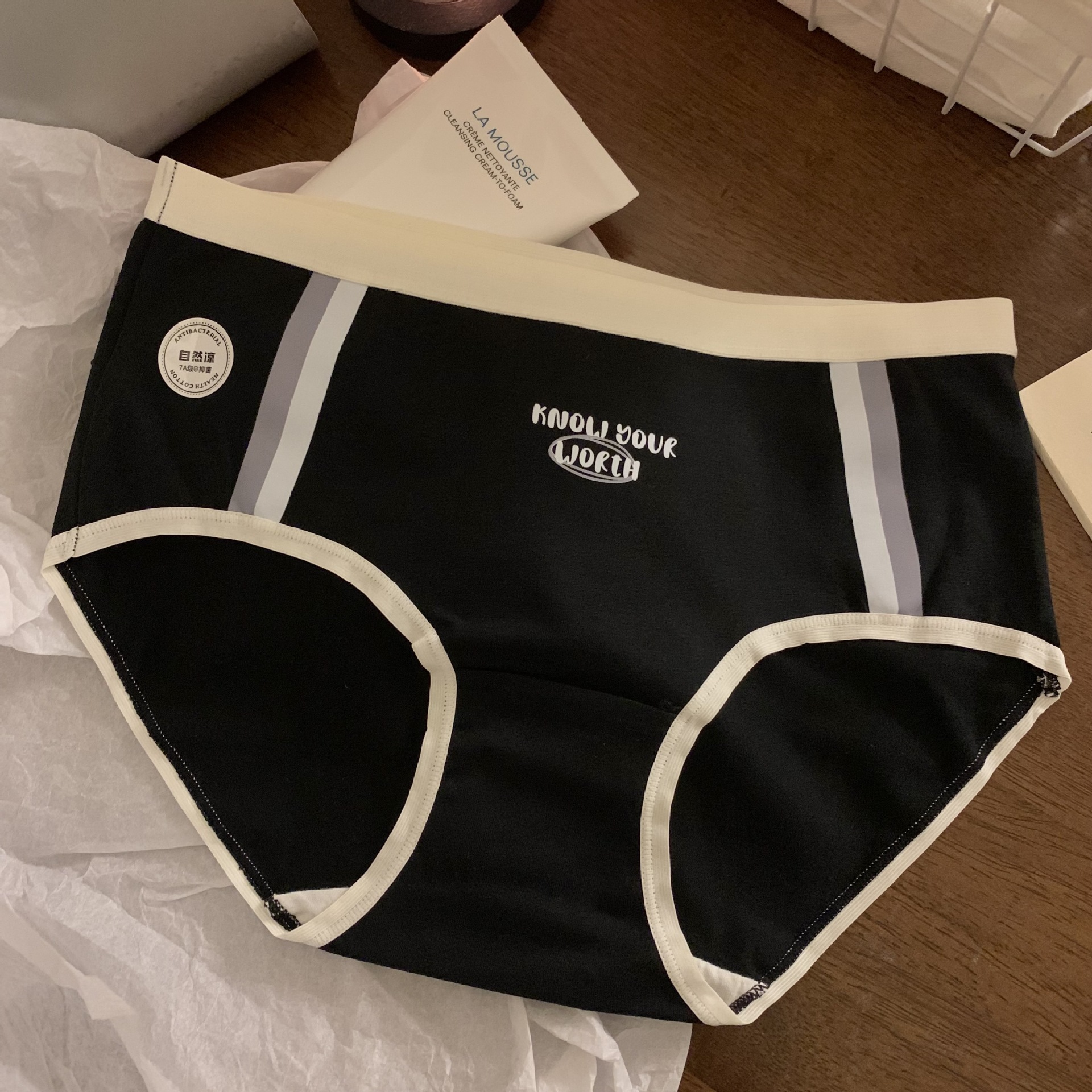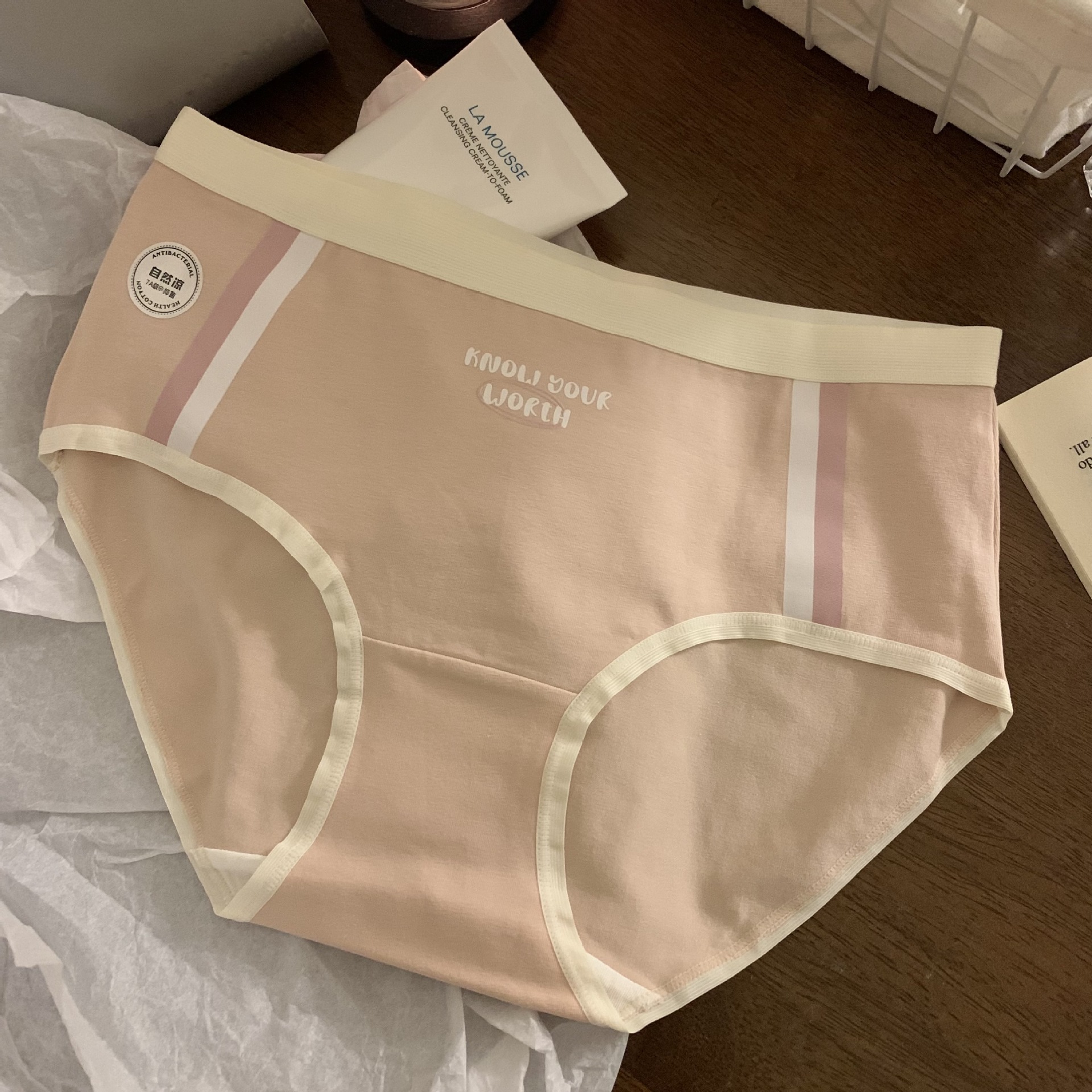 透气纯棉少女撞色简约高弹舒适字母简约50支棉中腰高弹女士三角裤
