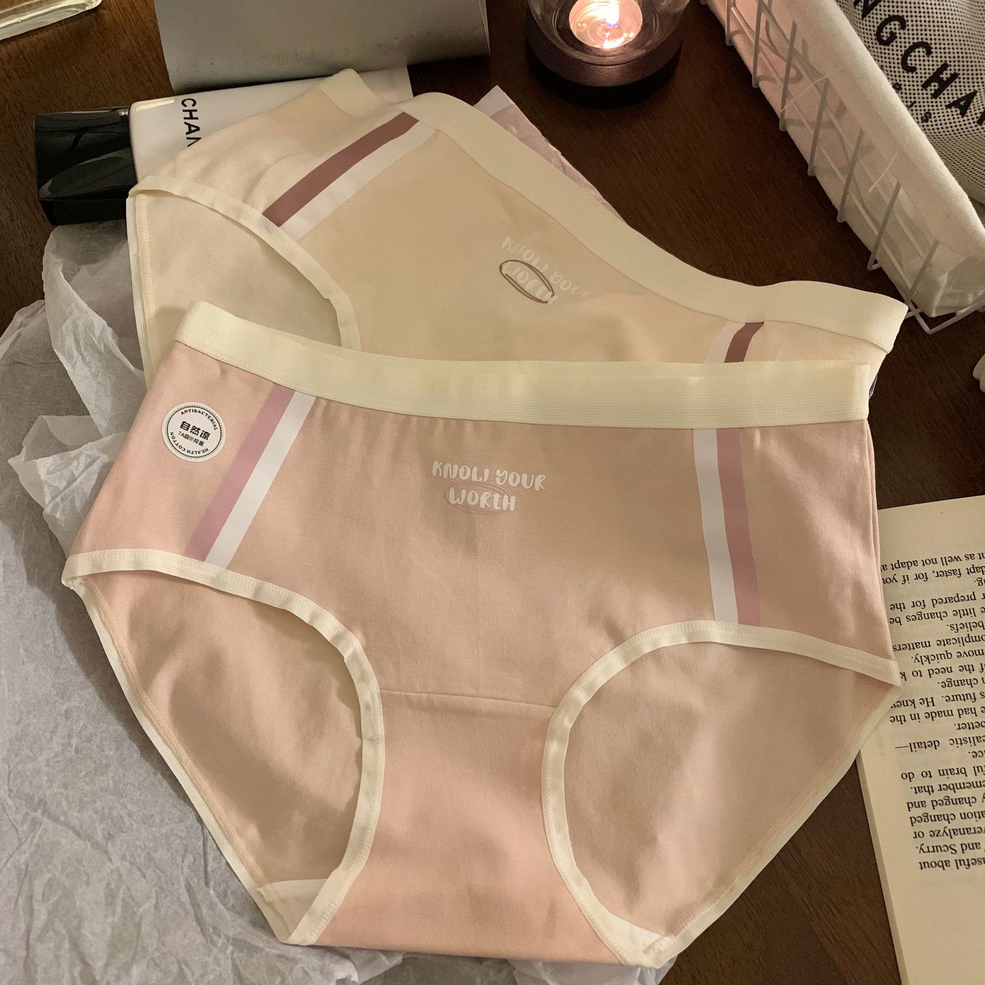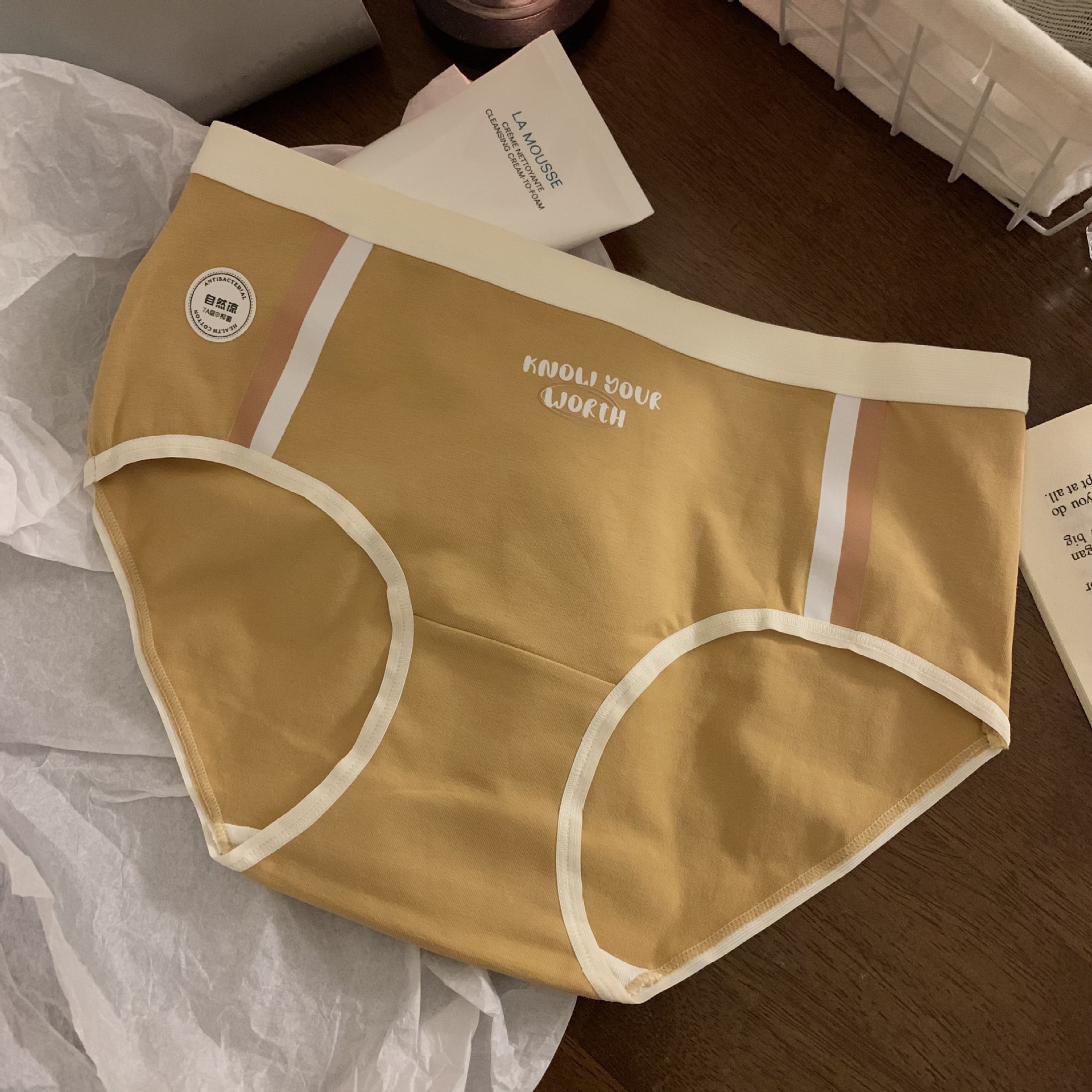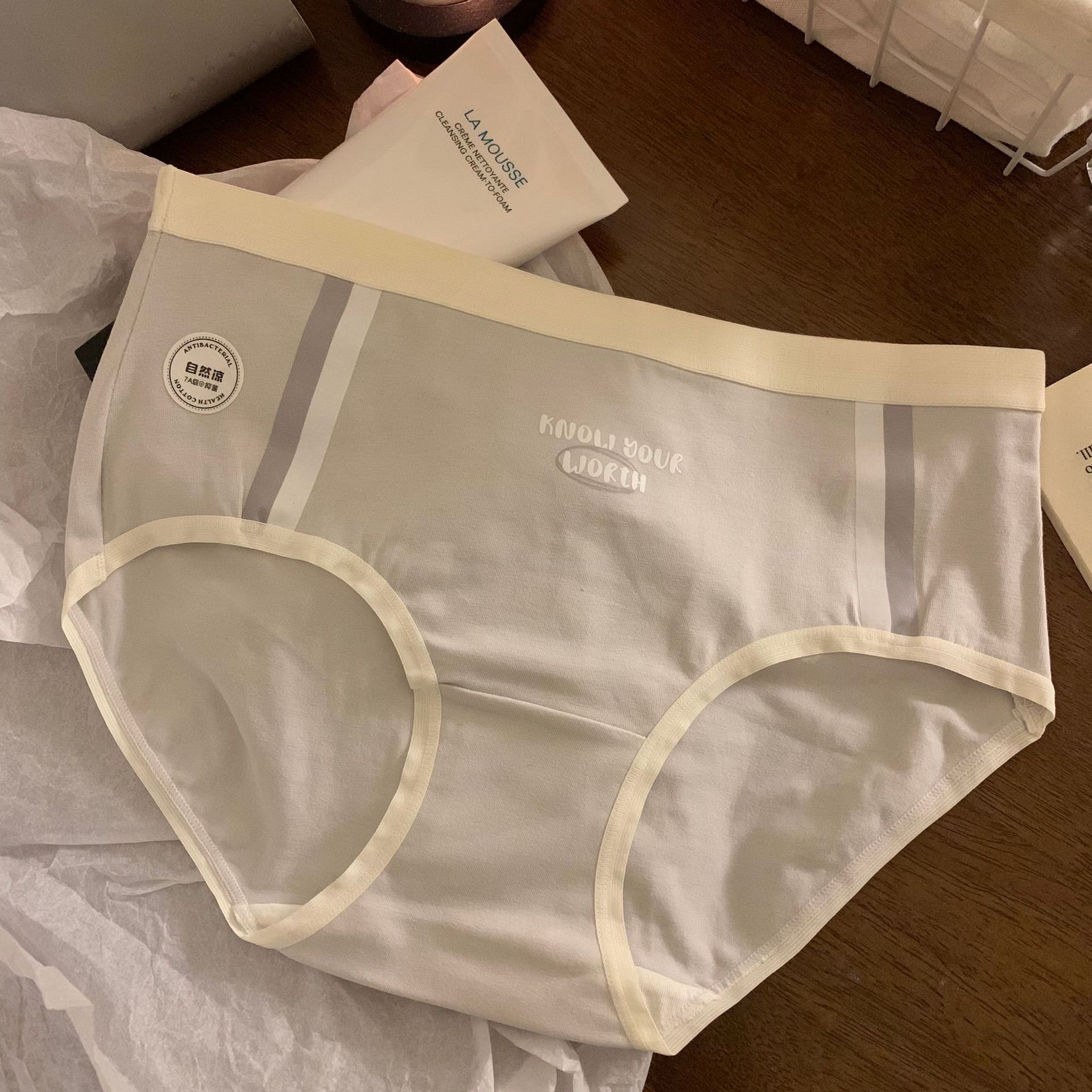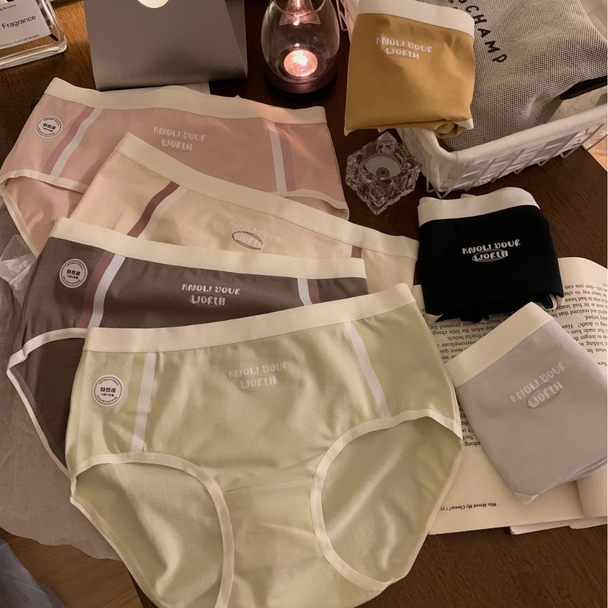 透气纯棉少女撞色简约高弹舒适字母简约50支棉中腰高弹女士三角裤