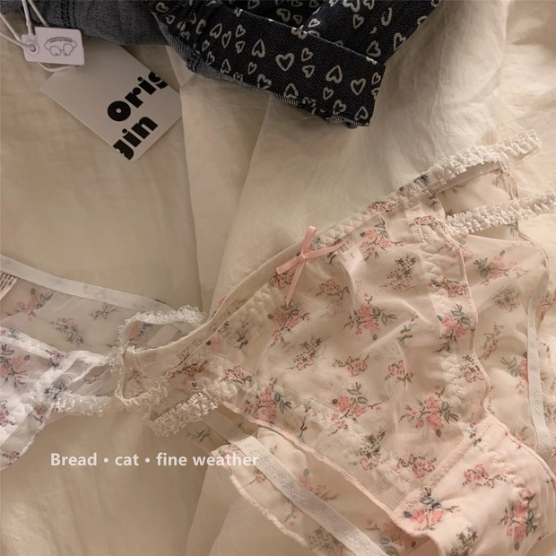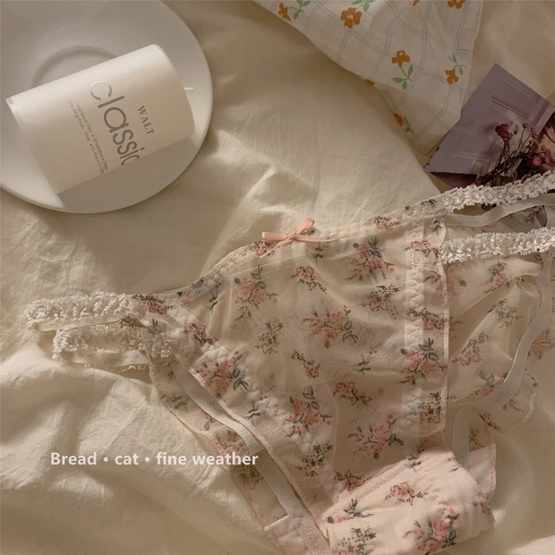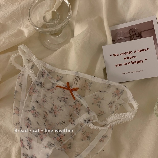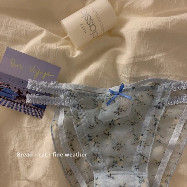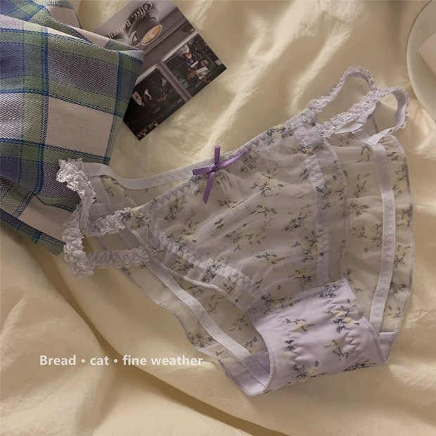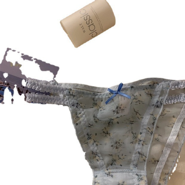 日系清新蕾丝内裤女甜美网纱纯欲透明低腰纯棉裆少女三角裤