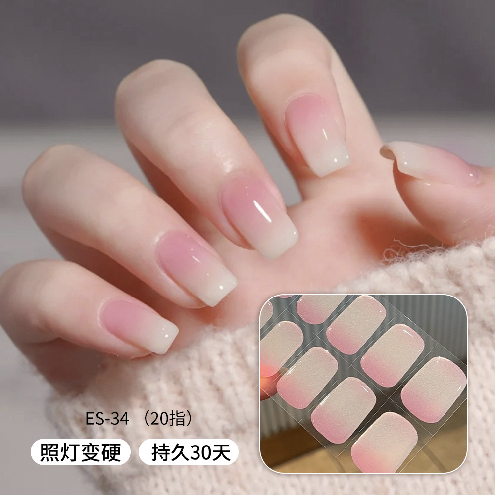 【ES34】20指半固化凝胶uv半烤美甲贴指甲贴片照灯变硬