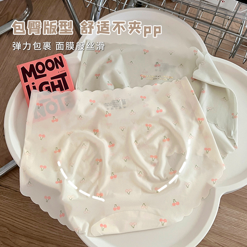亿涵梦甜美樱桃无痕奶皮超薄印花蜜桃臀舒适亲肤少女纯棉裆内裤