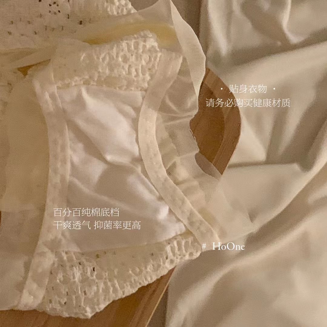 日系奶油云朵内裤少女蕾丝镂空透气纯棉底裆柔软中腰女士三角裤