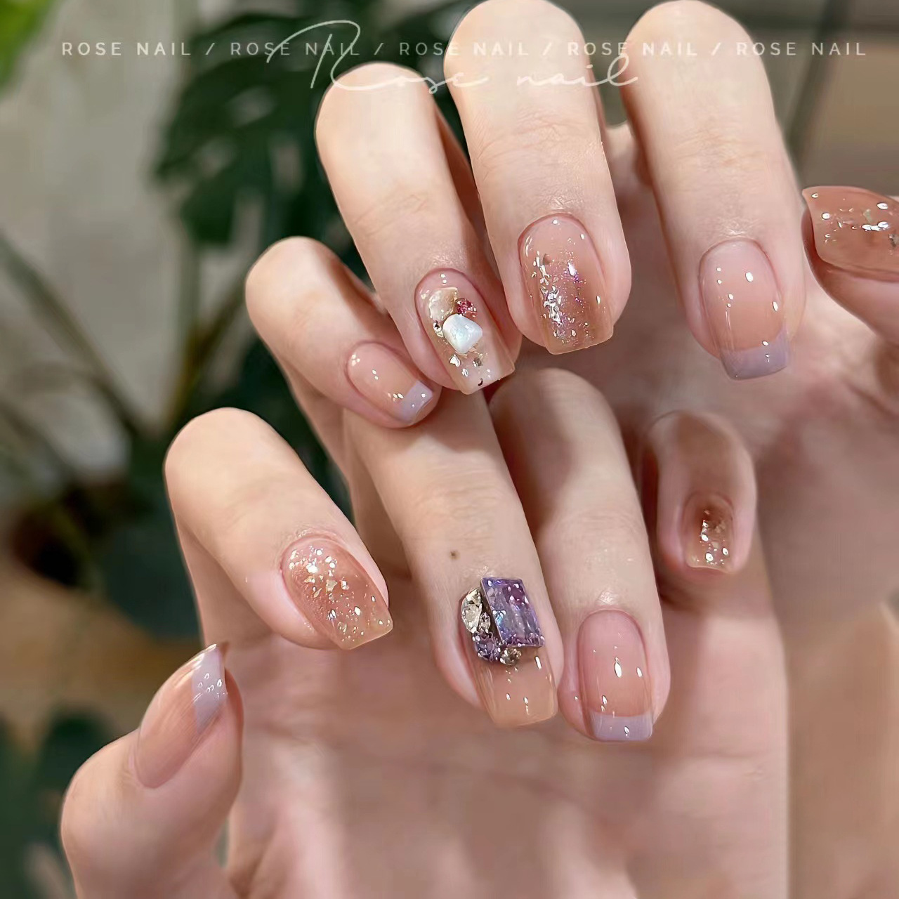 穿戴甲纯手工美甲成品假指甲贴片简约咖色晕染紫色法式显白裸色款