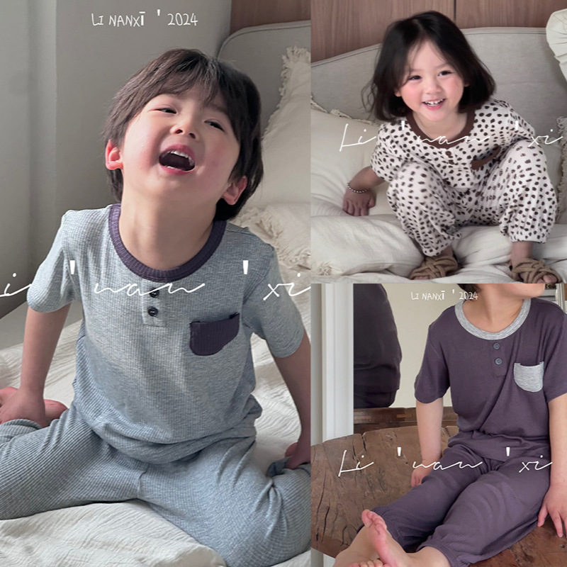 家居服儿童24夏新品男女童针织睡衣印花冰凉爽滑两件套短袖+长裤