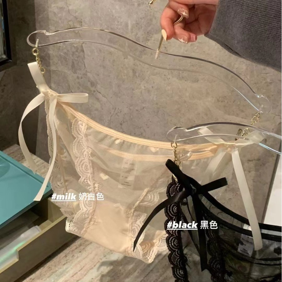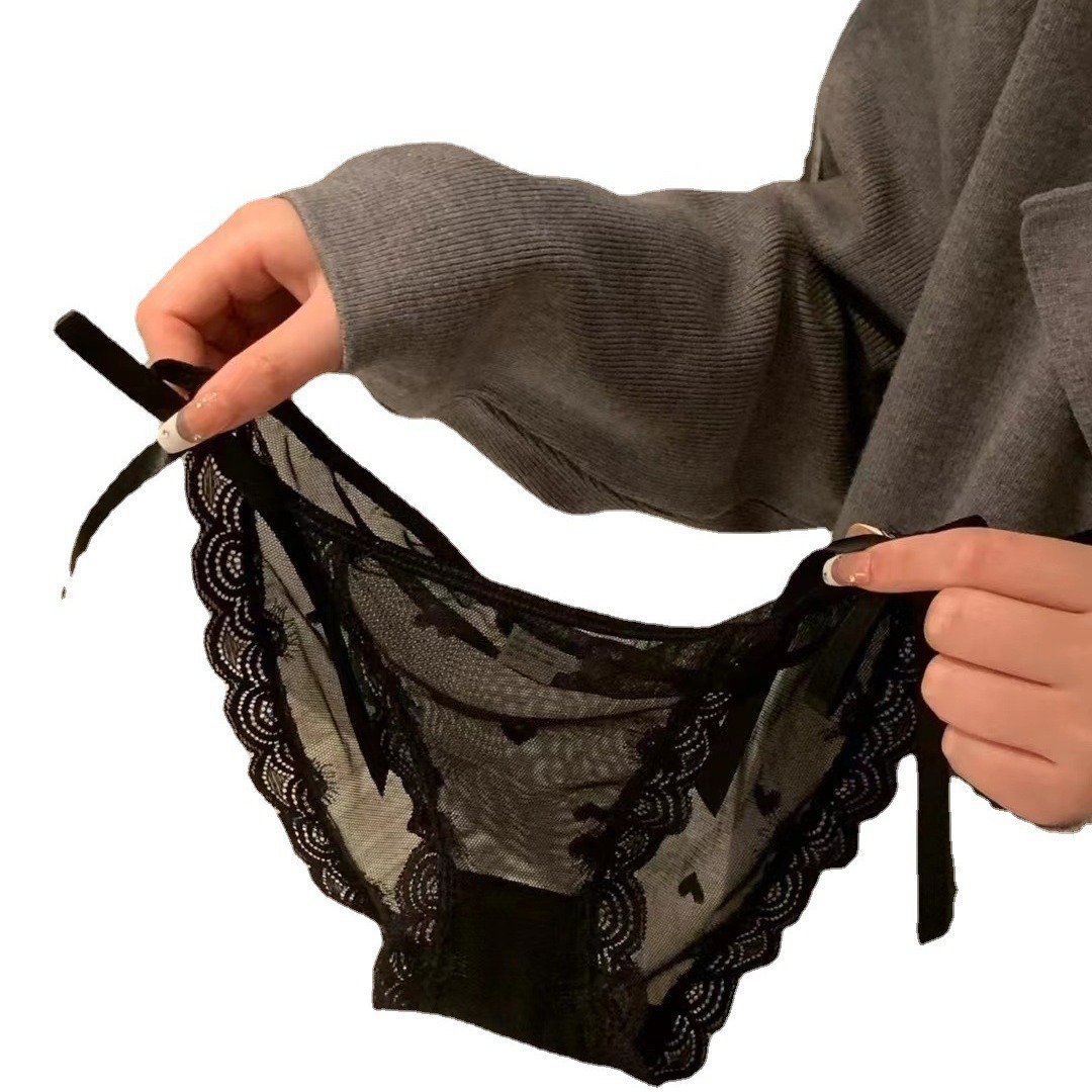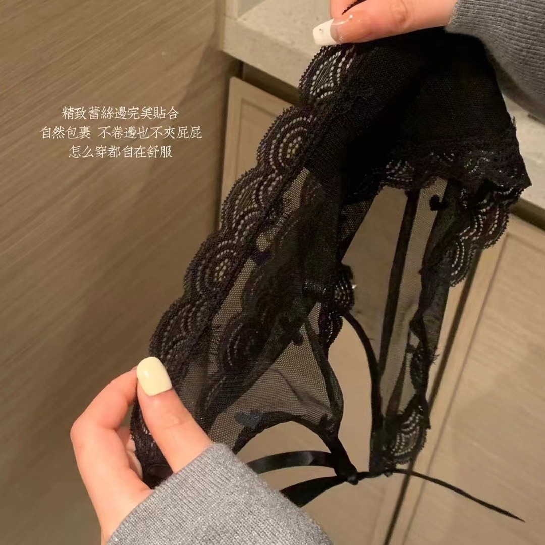 奶油蕾丝性感心机无痕中低腰三角裤女 透视超薄诱惑蝴蝶结内裤女