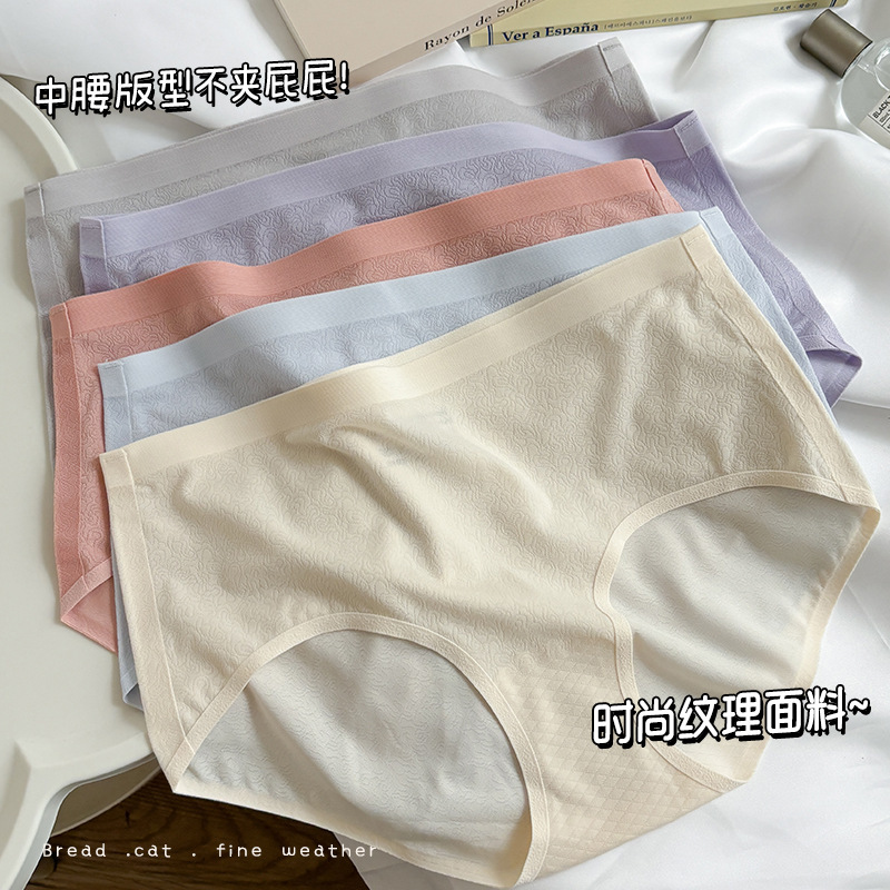 亿涵梦纹理面料透气不闷热超薄透气中腰包臀版型奶呼呼内裤女