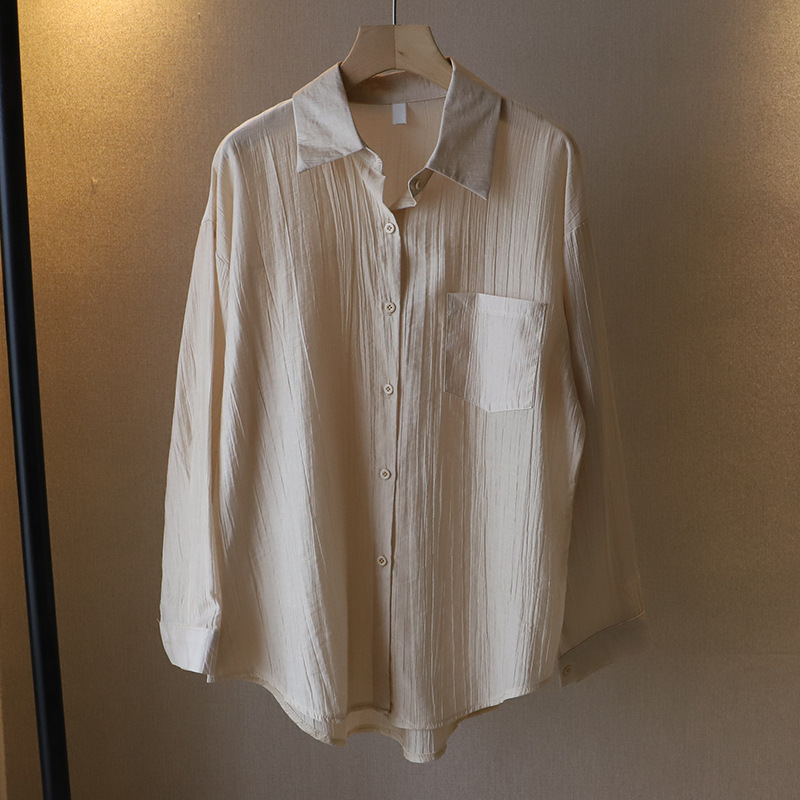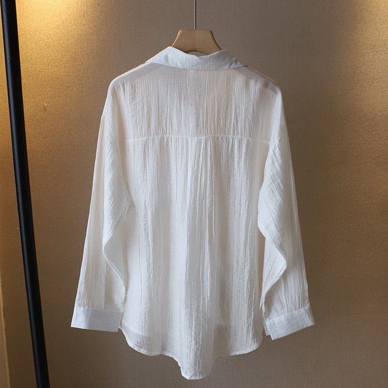 薄如蝉翼~薄款透明朦胧感衬衫韩版女装大版显瘦长袖防晒衬衫衬衣