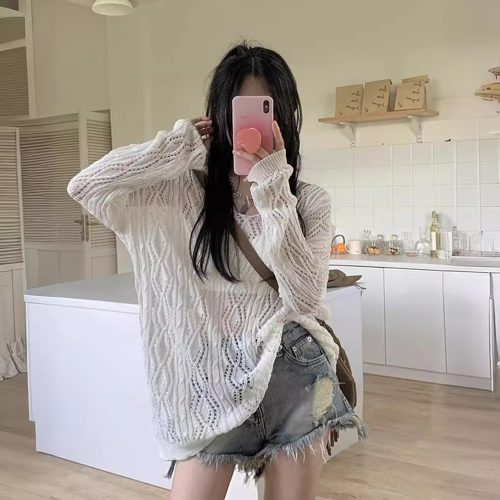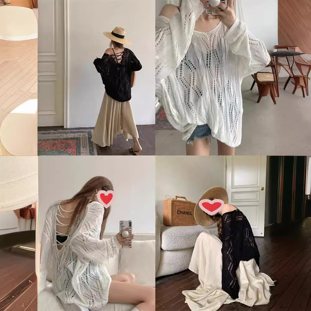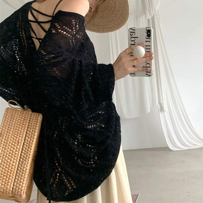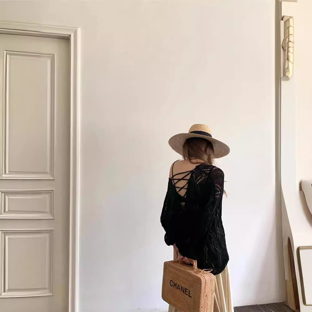 针织罩衫女春季吊带外搭新款慵懒设计感小众镂空露背针织上衣