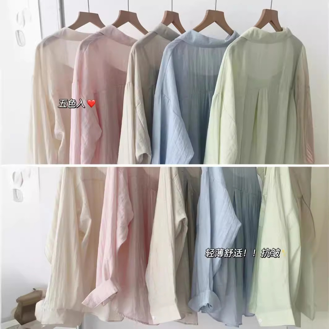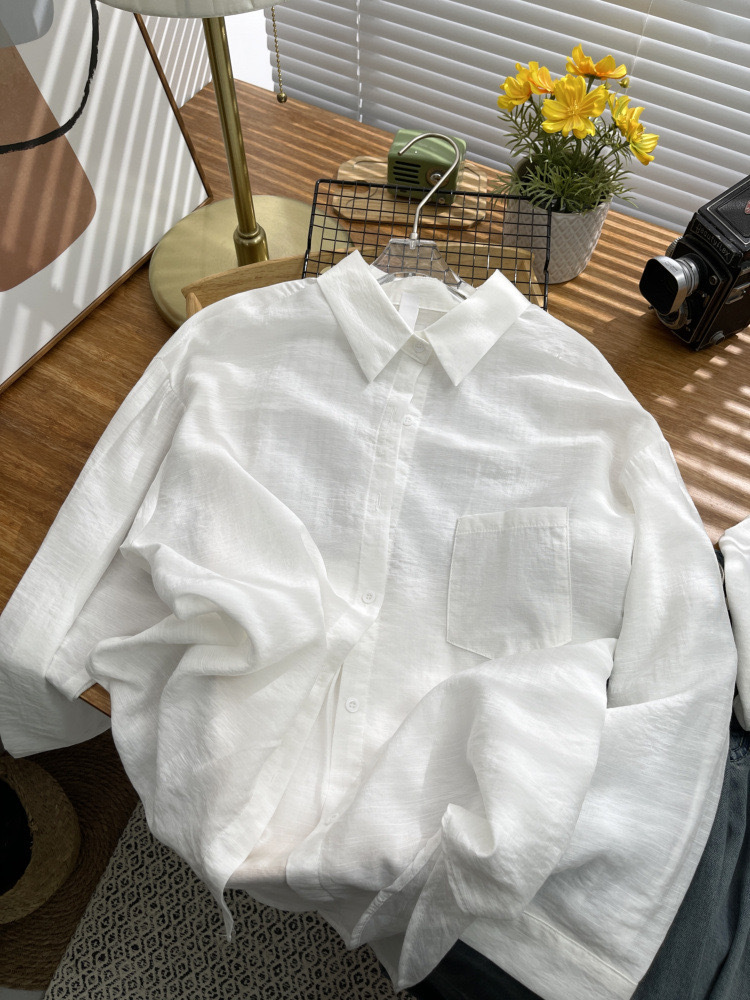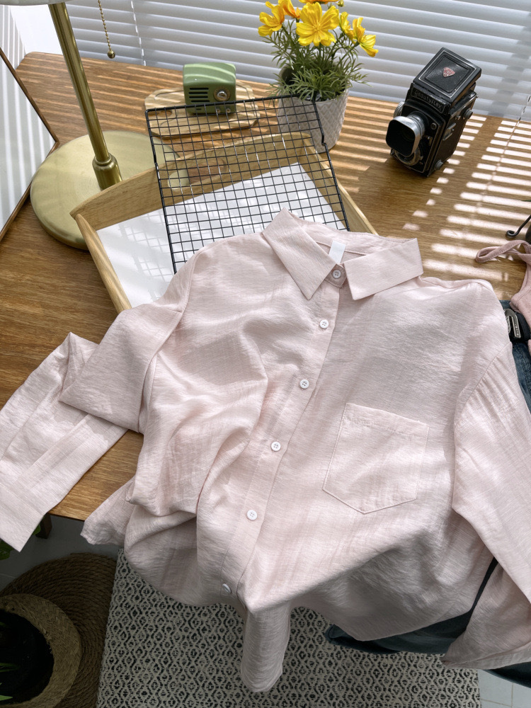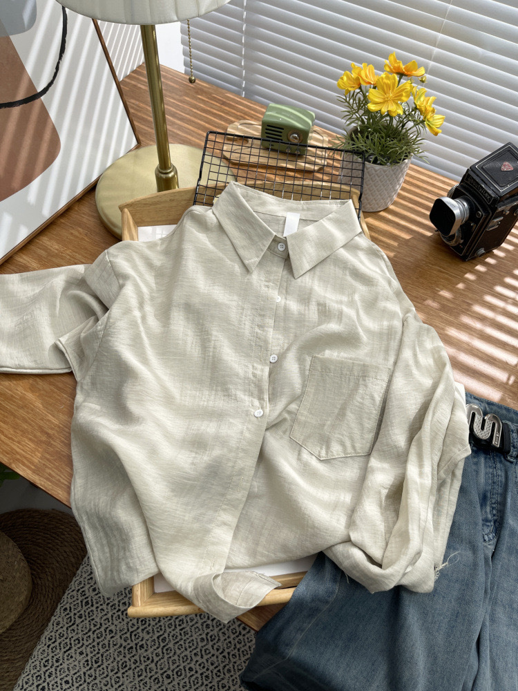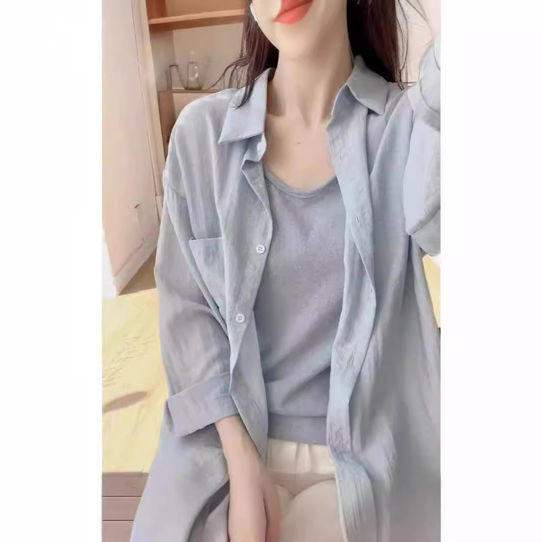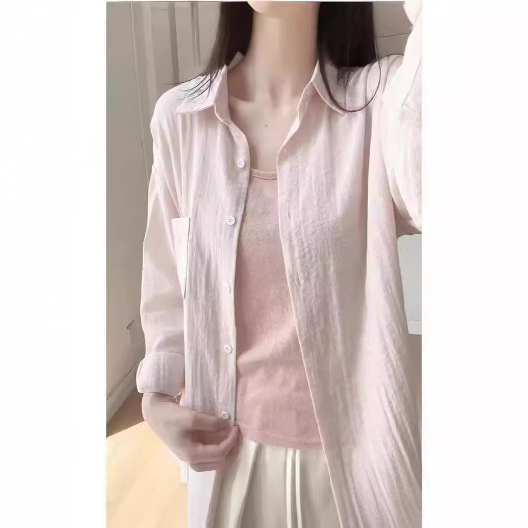 期待夏天~法式棉麻防晒衬衫女棉麻薄款衬衣高级感抗皱长袖两件套