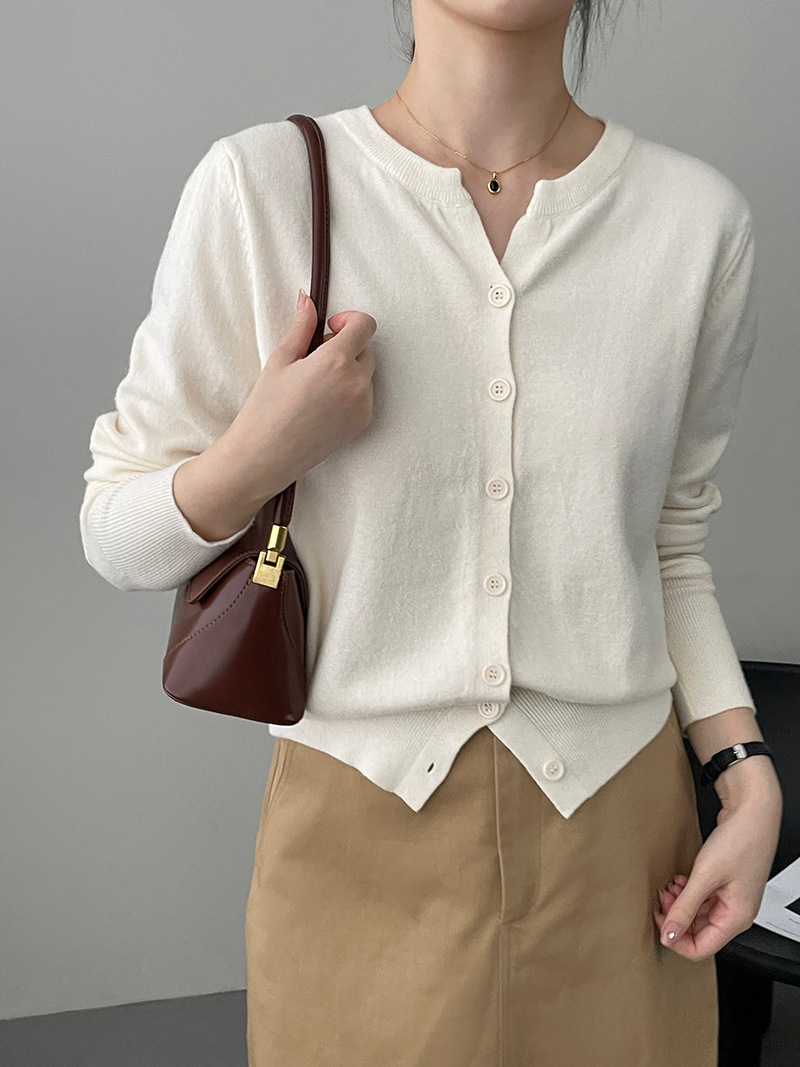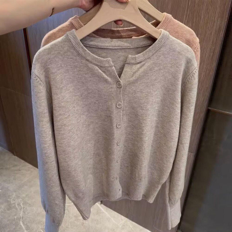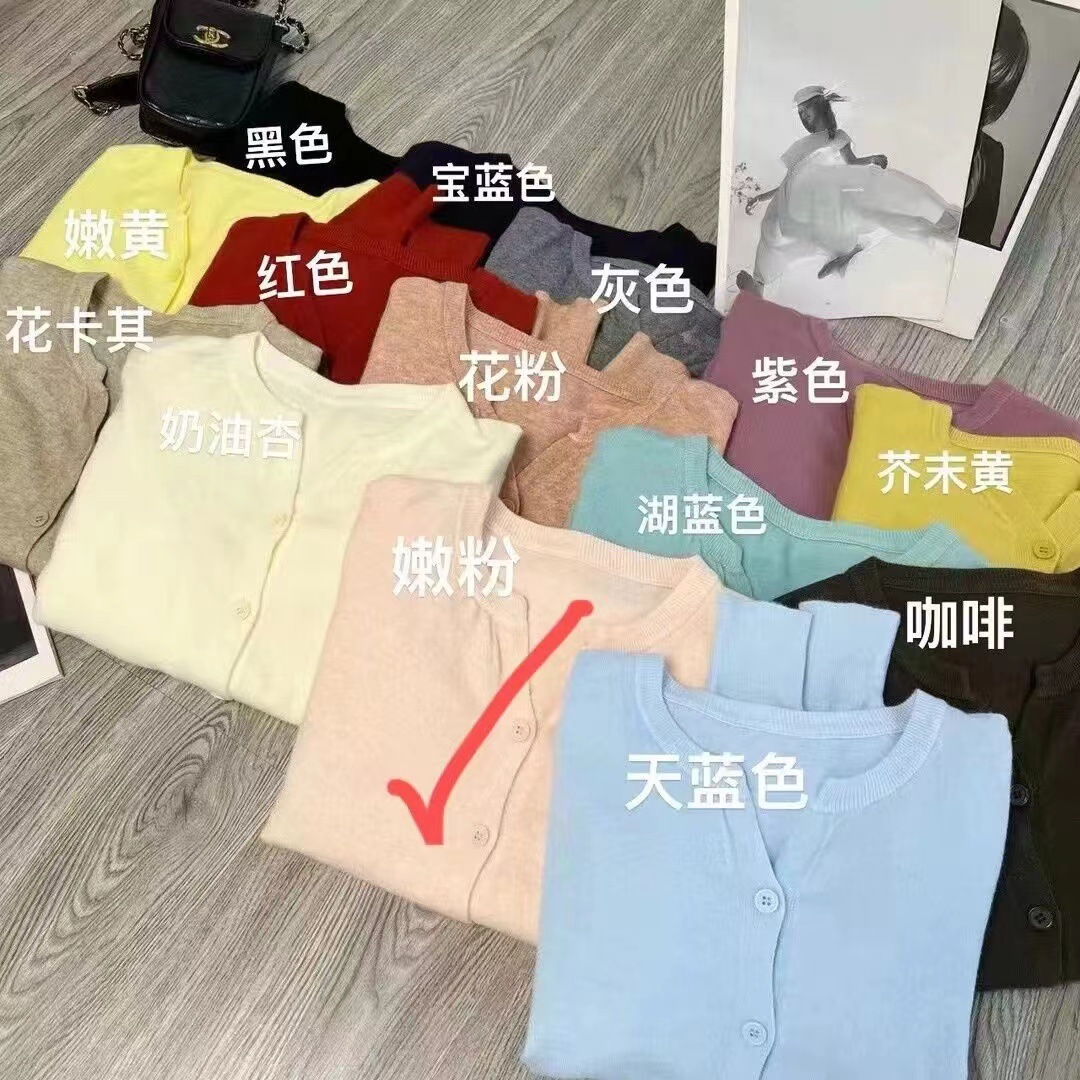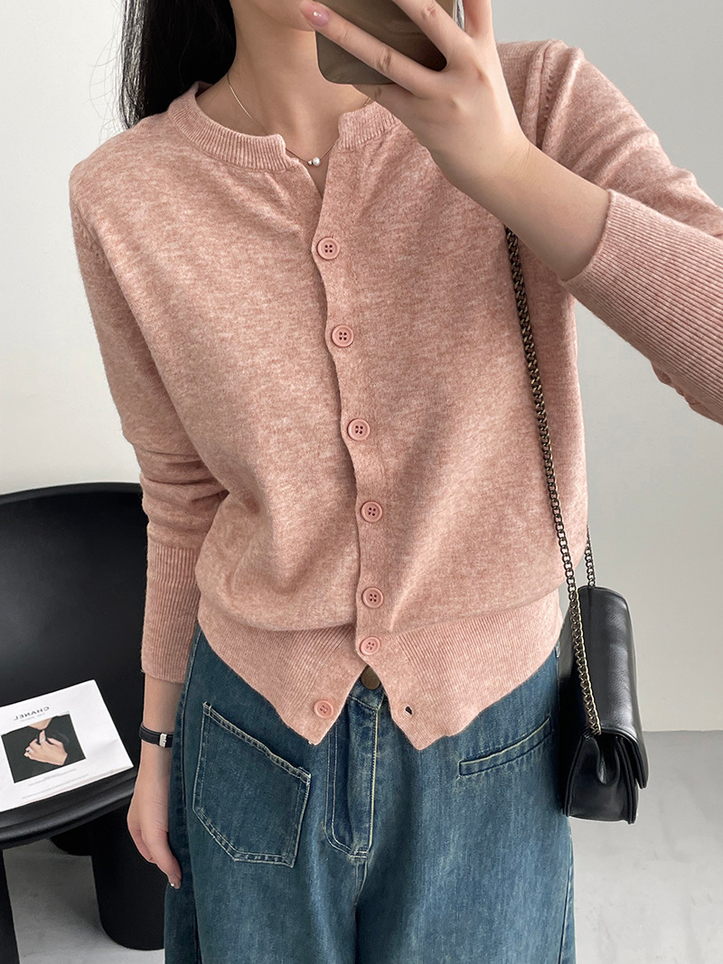 新款早秋韩系温柔粉色毛衣女软糯亲肤针织衫小开衫圆领毛衣外套女