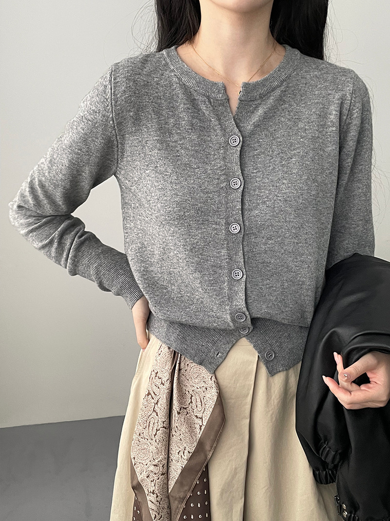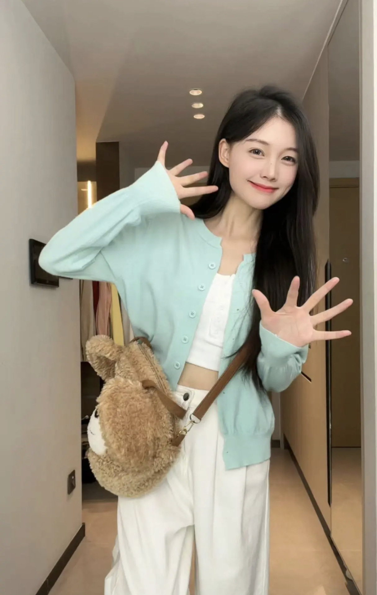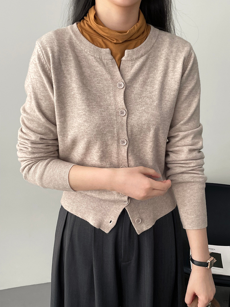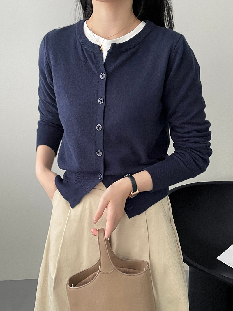 新款早秋韩系温柔粉色毛衣女软糯亲肤针织衫小开衫圆领毛衣外套女