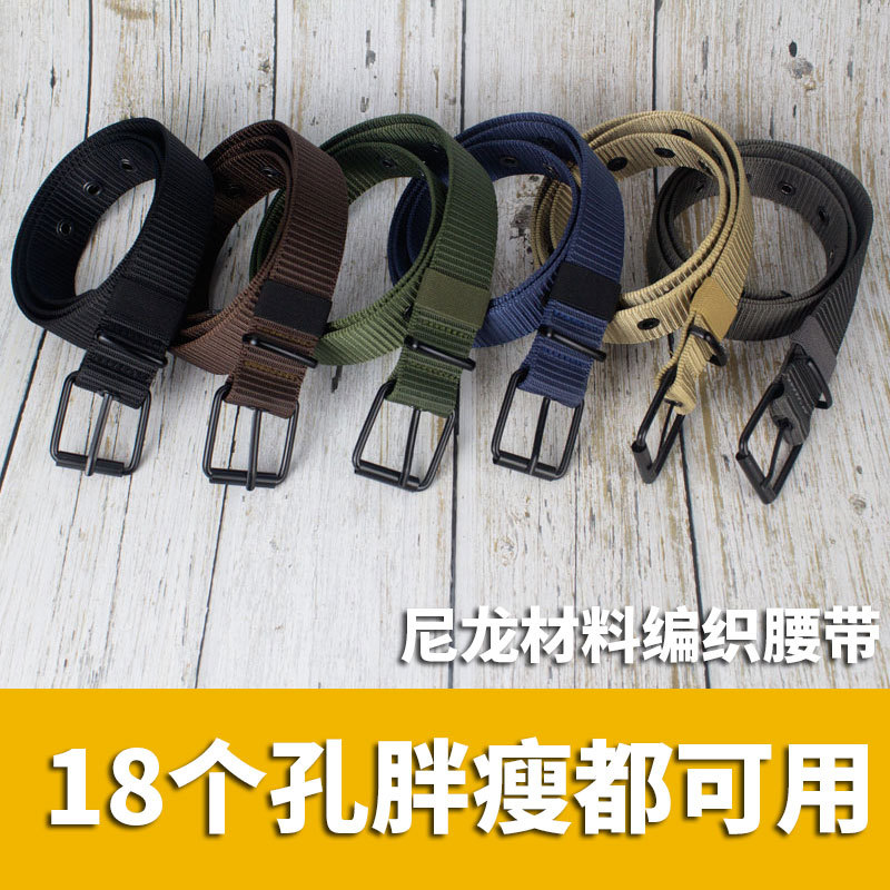 多孔耐用针扣腰带男款帆布结实男士皮带加长学生百搭军训牛仔裤带