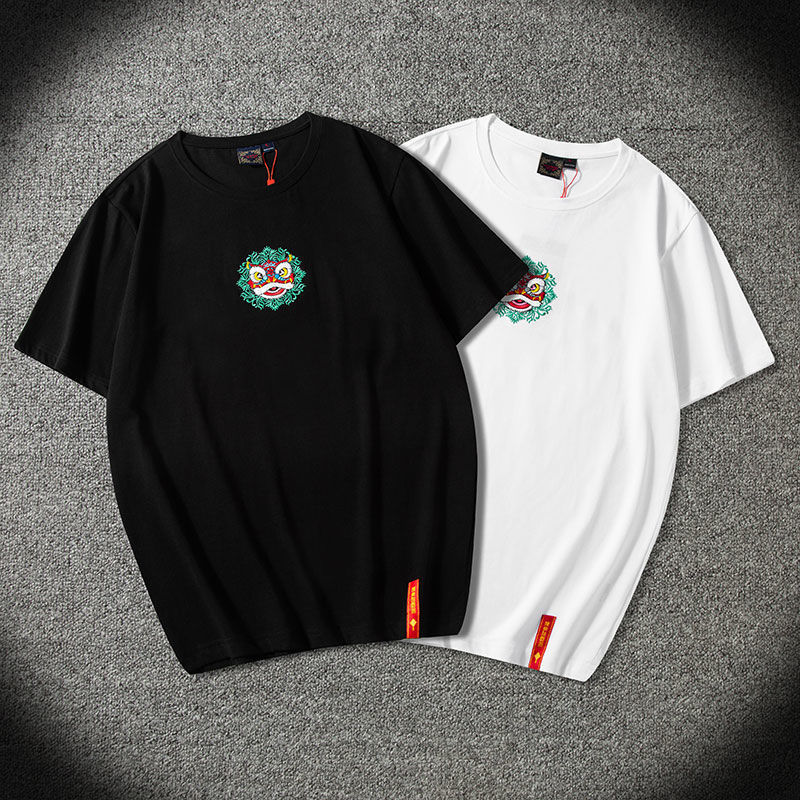 刺绣短袖t恤男夏季新款国潮中国风棉圆领宽松潮流情侣体恤