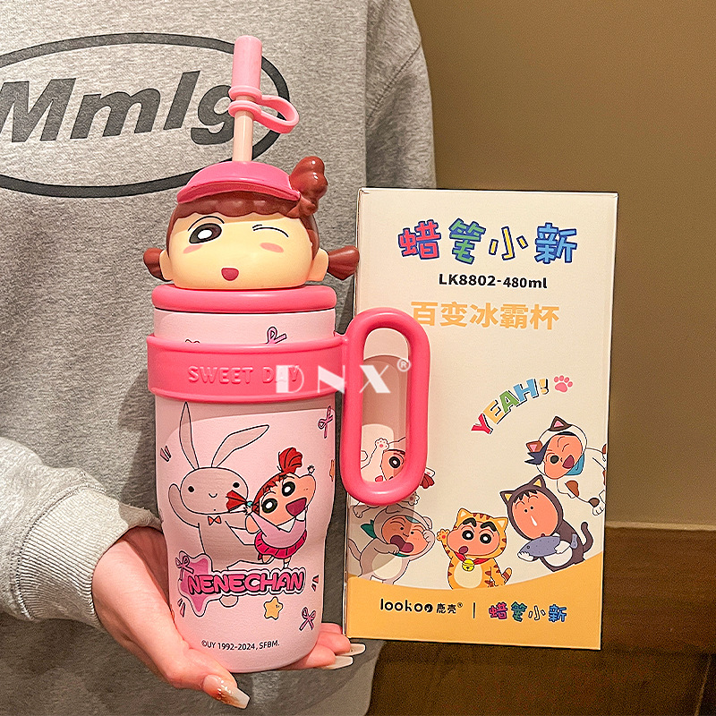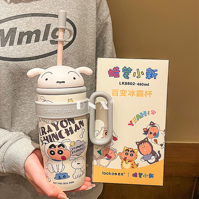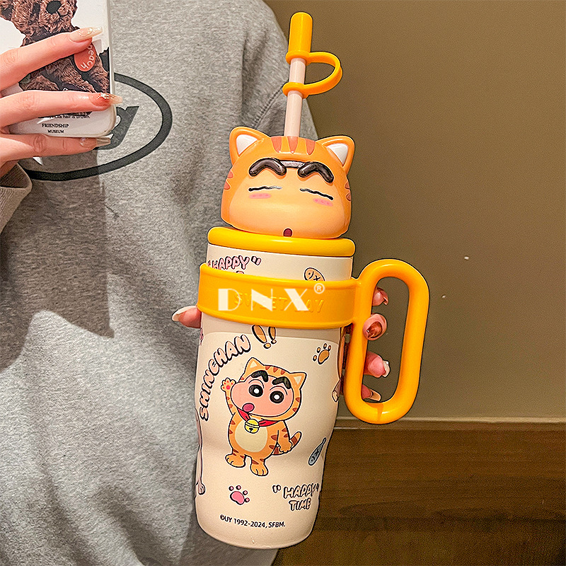 蜡笔小新大手柄水杯316不锈钢儿童保温杯新款可爱大容量吸管桌面