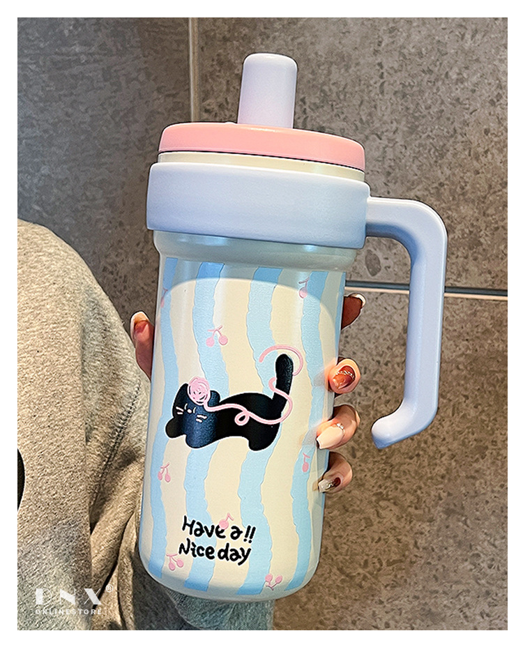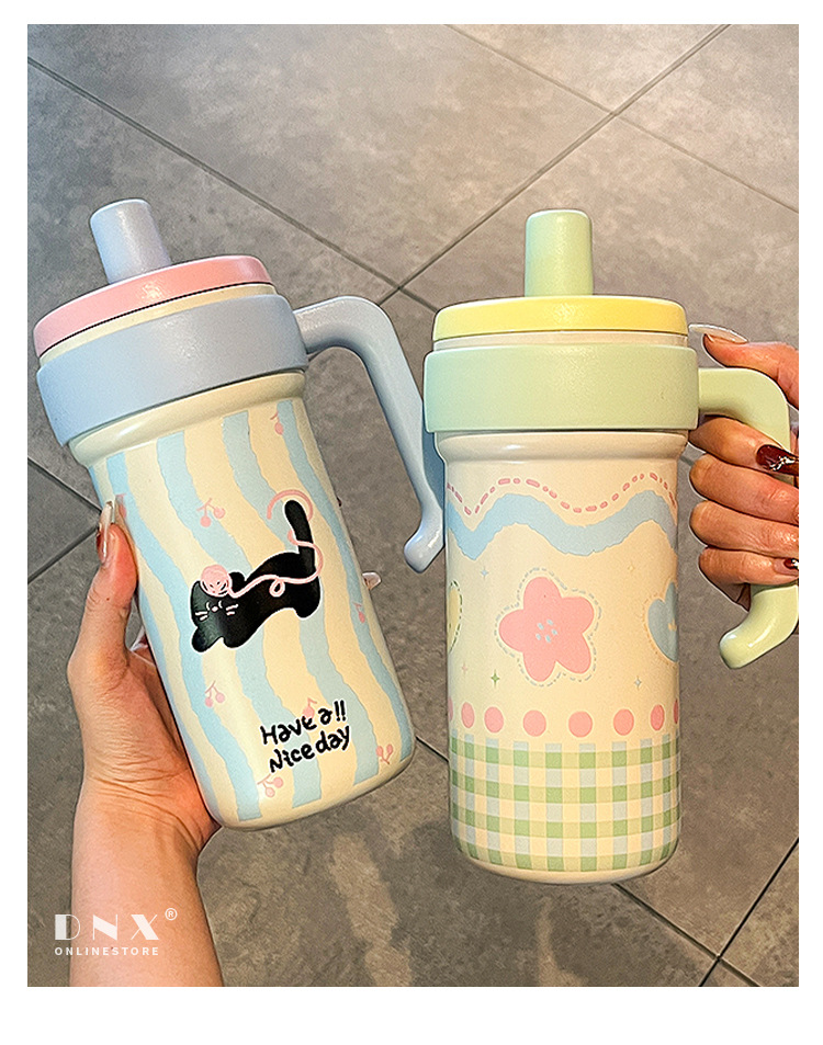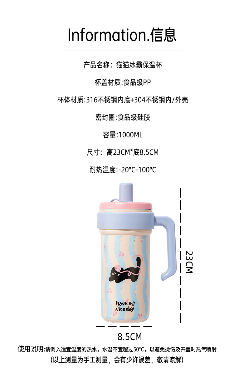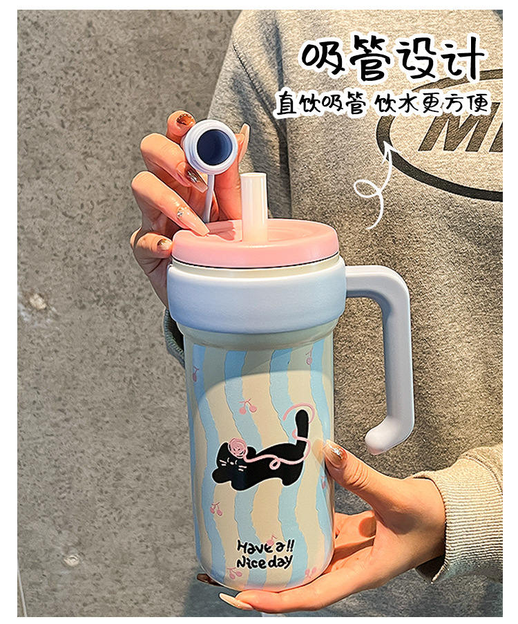 巨无霸保温杯卡通大容量女生高颜值冰霸杯家用保温壶学生吸管杯子