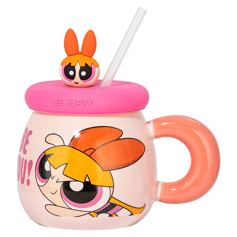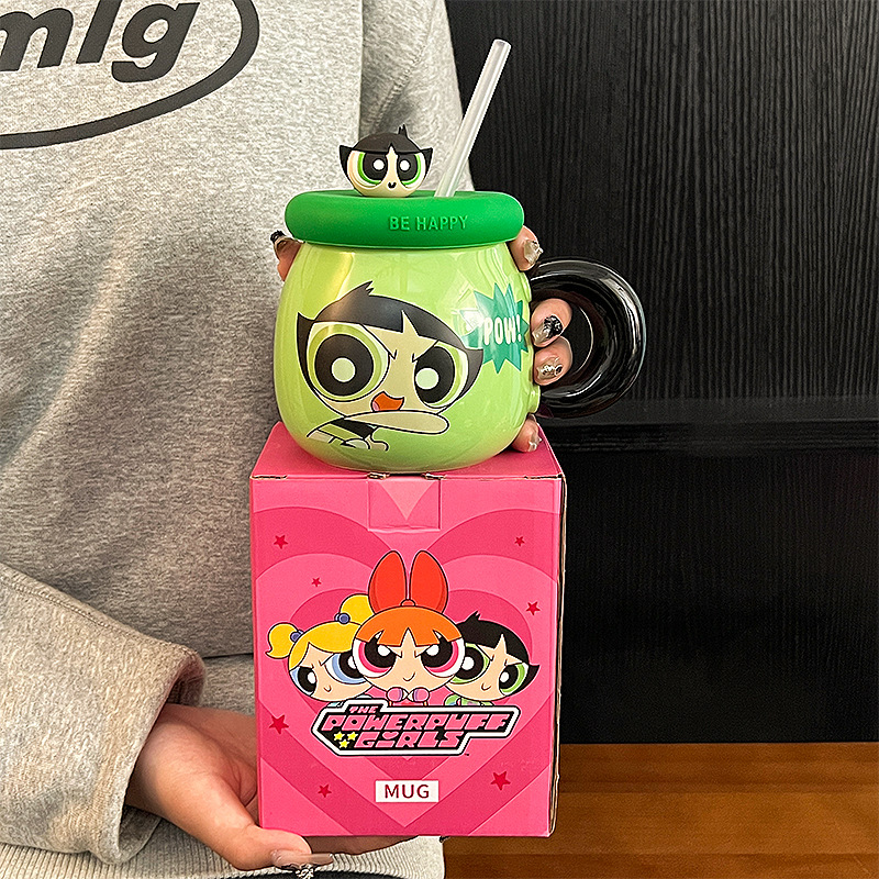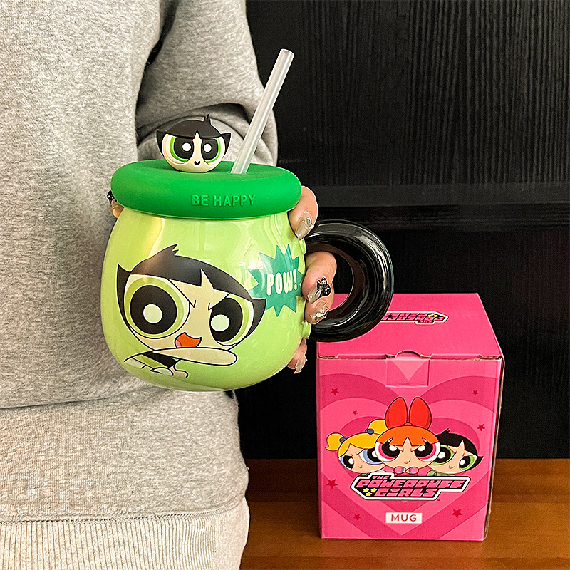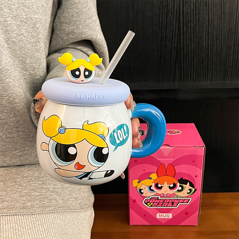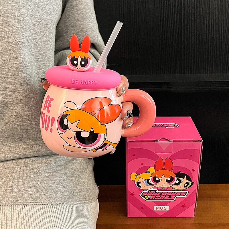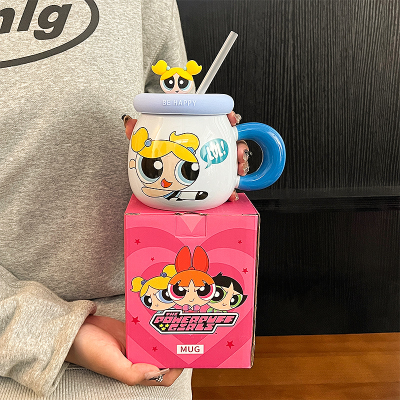 飞天小女警陶瓷马克杯女生可爱带盖生日礼物咖啡杯子家用情侣水杯