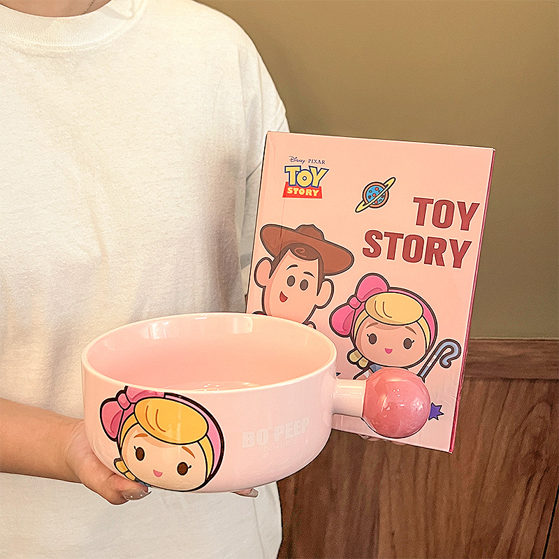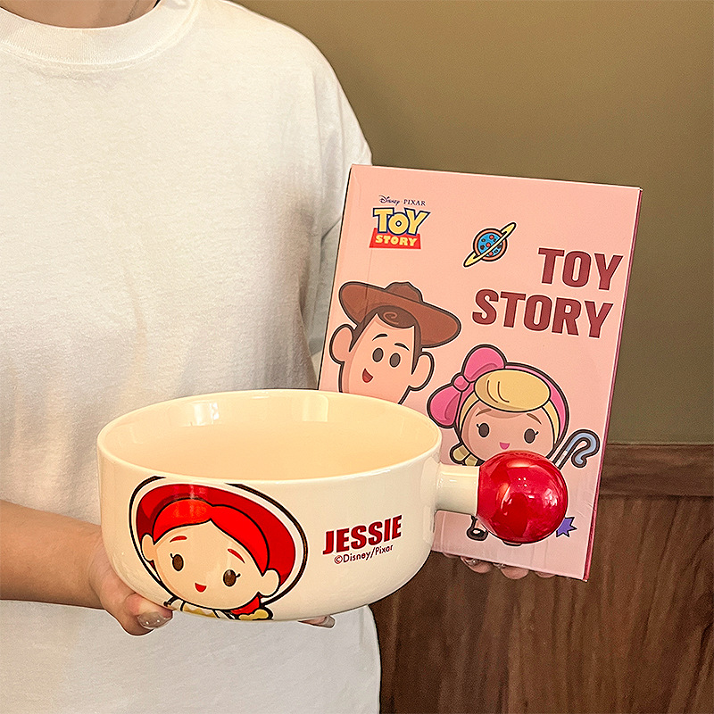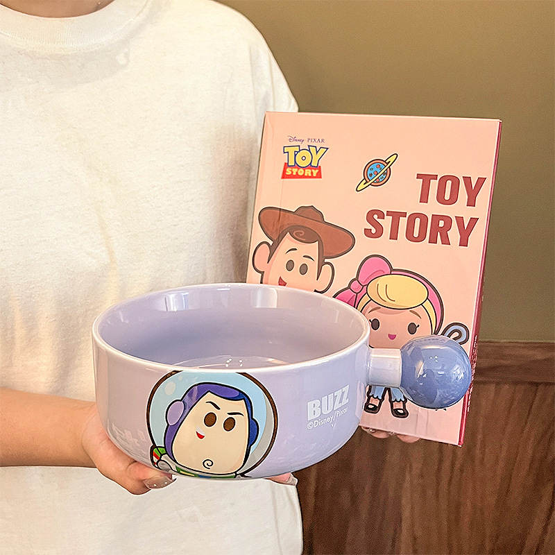 玩具总动员手柄碗家用巴斯光年网红餐具陶瓷碗带把手高颜值沙拉碗