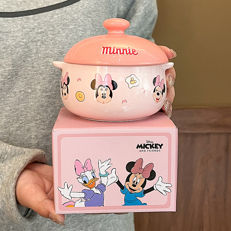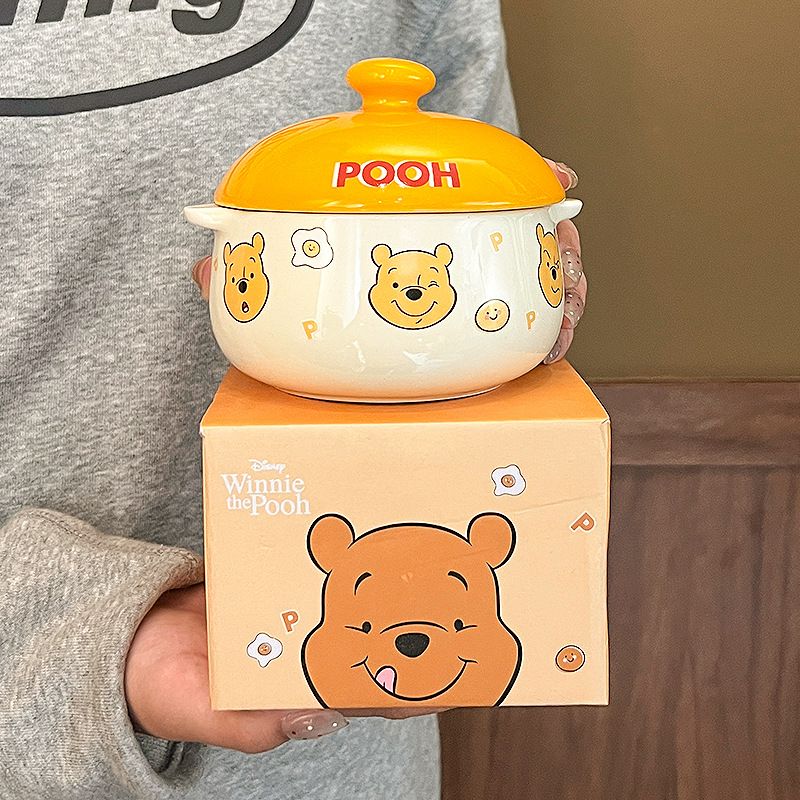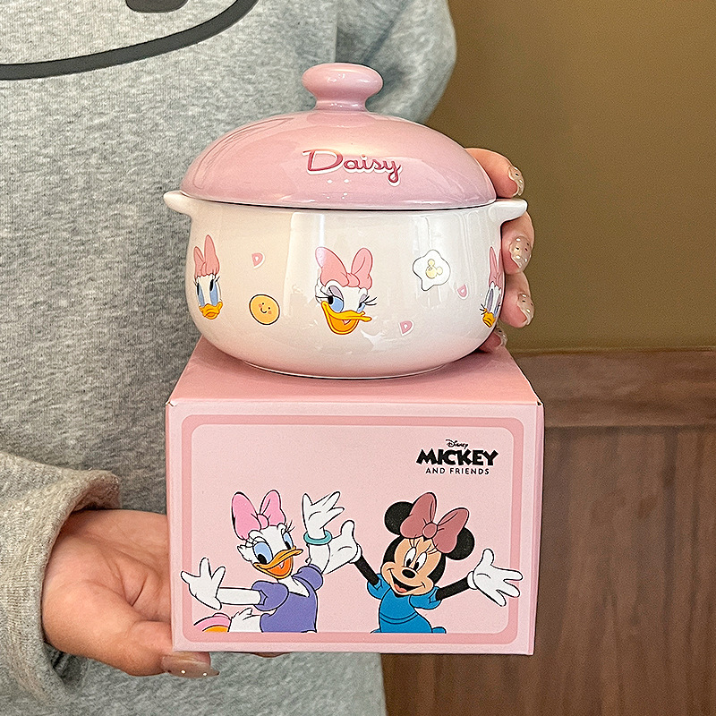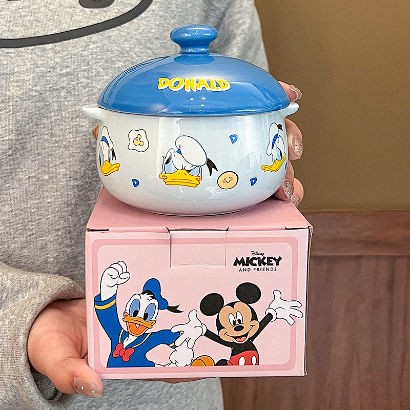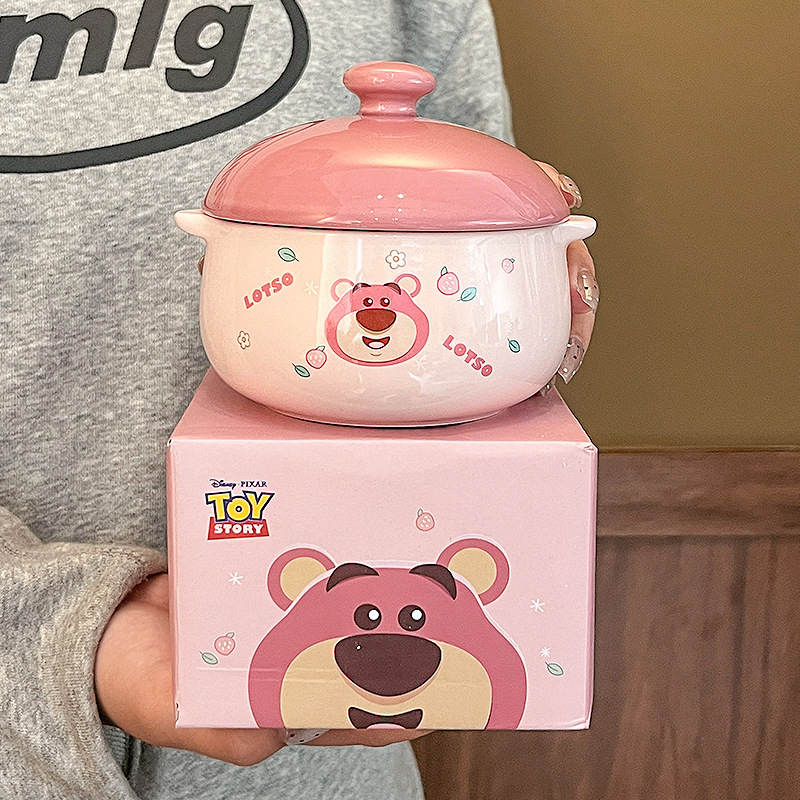 双耳汤碗带盖陶瓷碗卡通可爱家用高级感碗一人食小炖盅鸡蛋羹用碗
