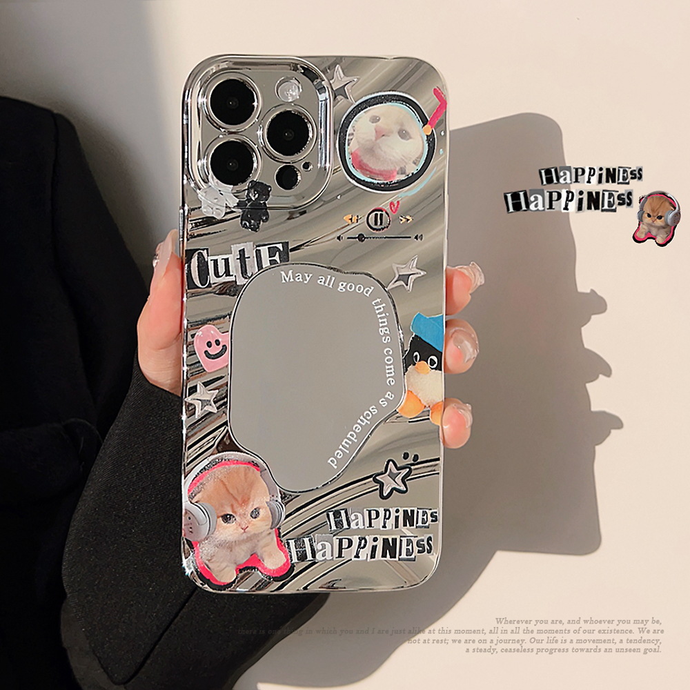 拽拽小猫iPhone15pro手机壳max苹果14镜面11甜酷潮牌13电镀12硬壳