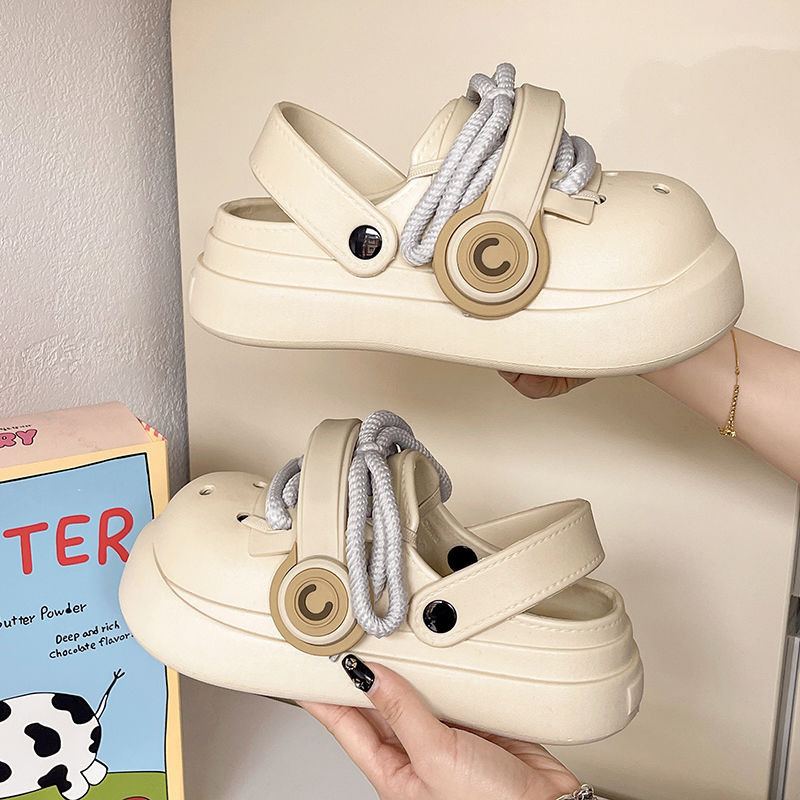 春夏大头情侣厚底增高洞洞鞋男女朋克风耳机鞋外穿软底凉拖鞋凉鞋