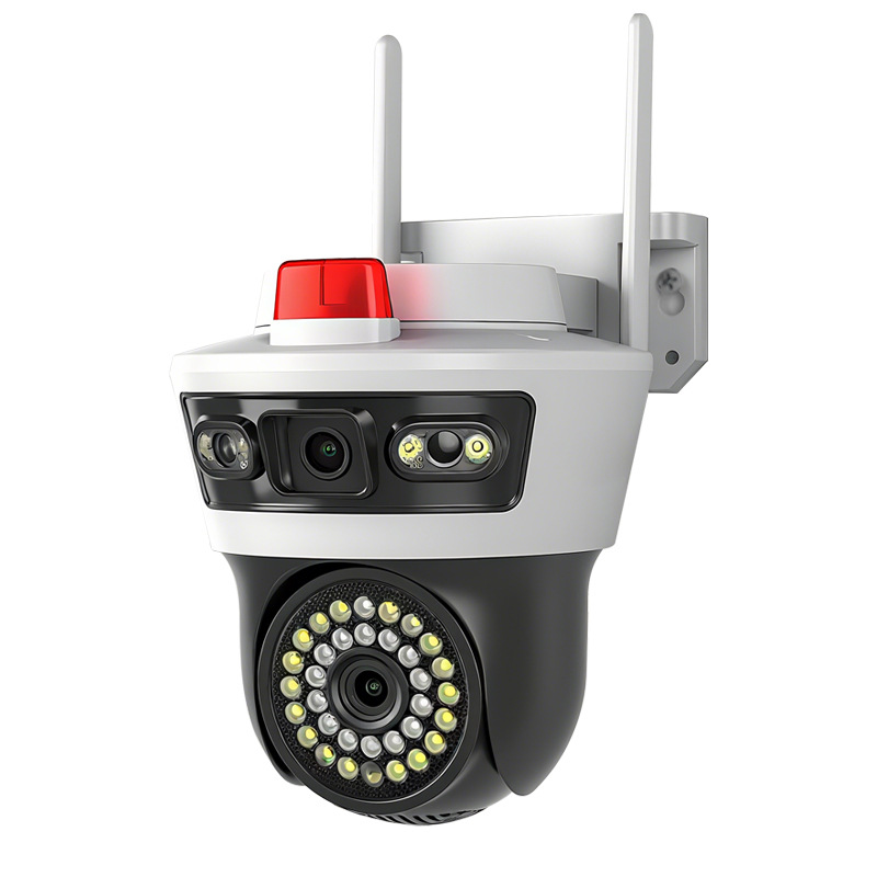 三画面摄像头360无死角手机远程全彩夜视室外高清防水智能监控器