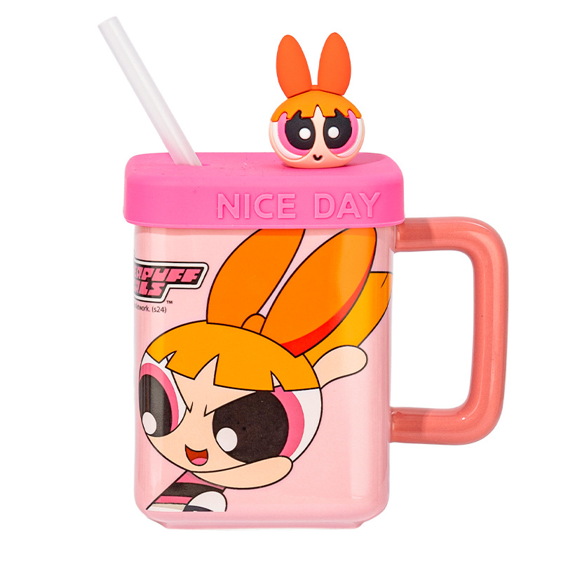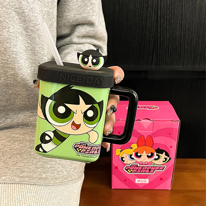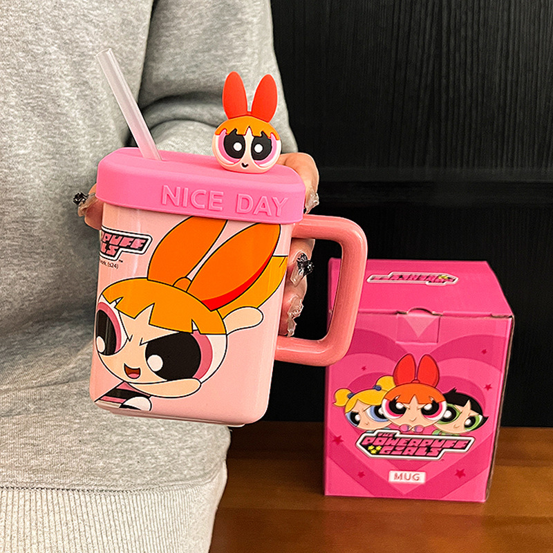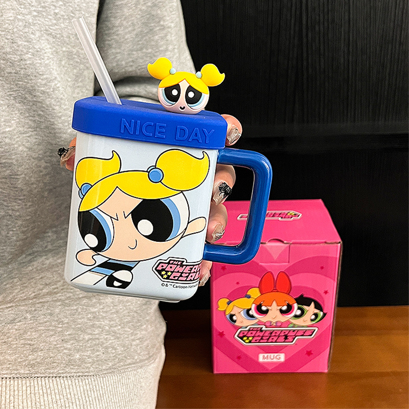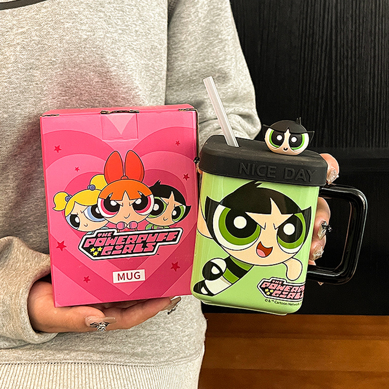 飞天小女警马克杯女生高颜值带盖礼物咖啡杯家用情侣陶瓷吸管水杯