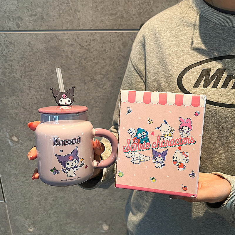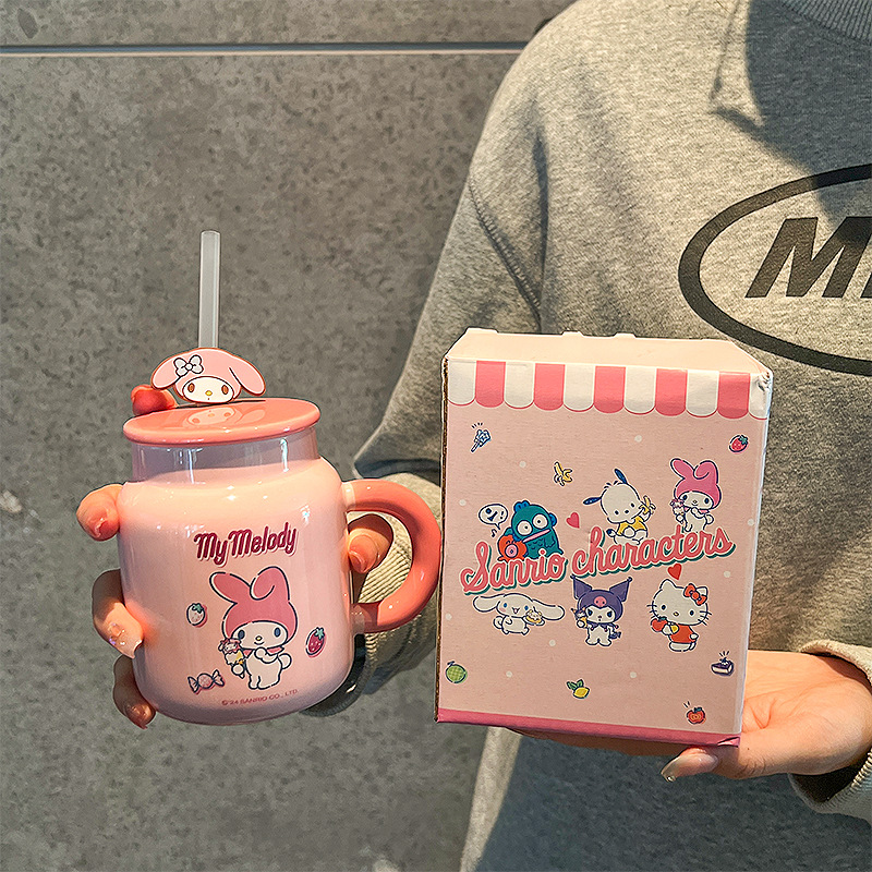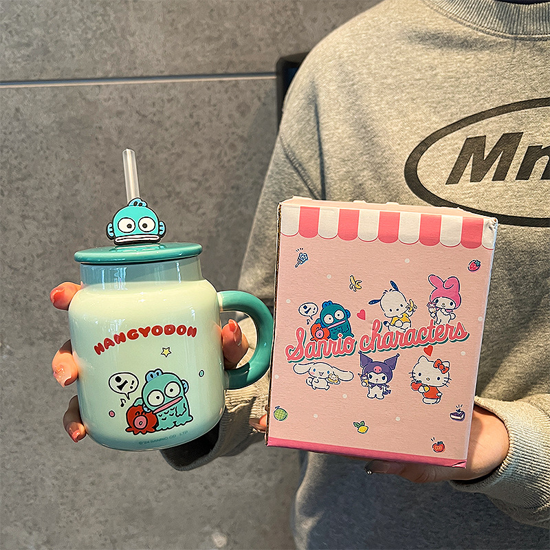 三丽鸥马克杯精美彩盒带盖带吸管杯子卡通图案高颜值陶瓷水杯