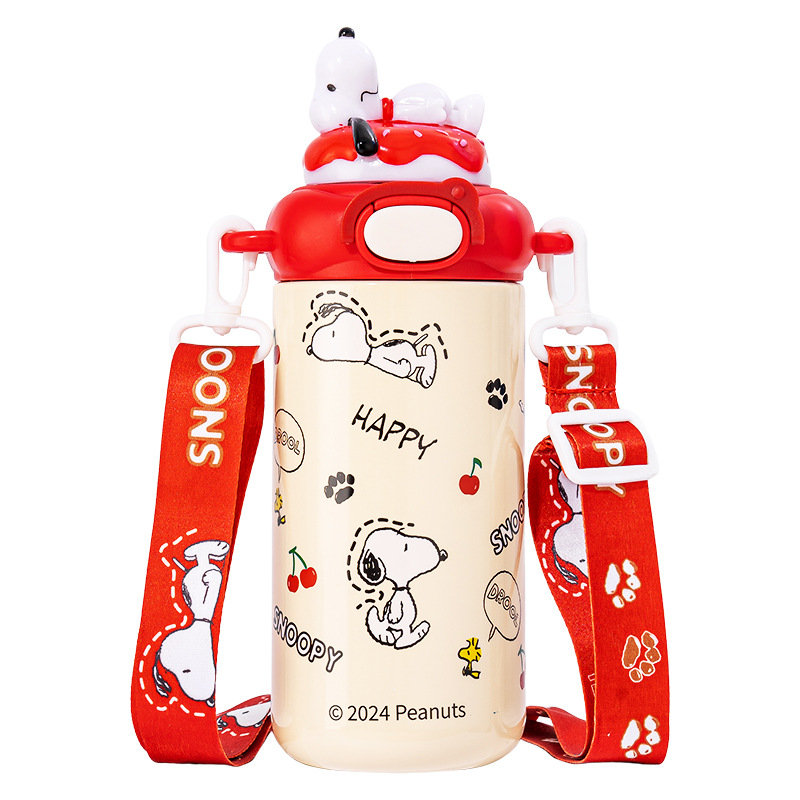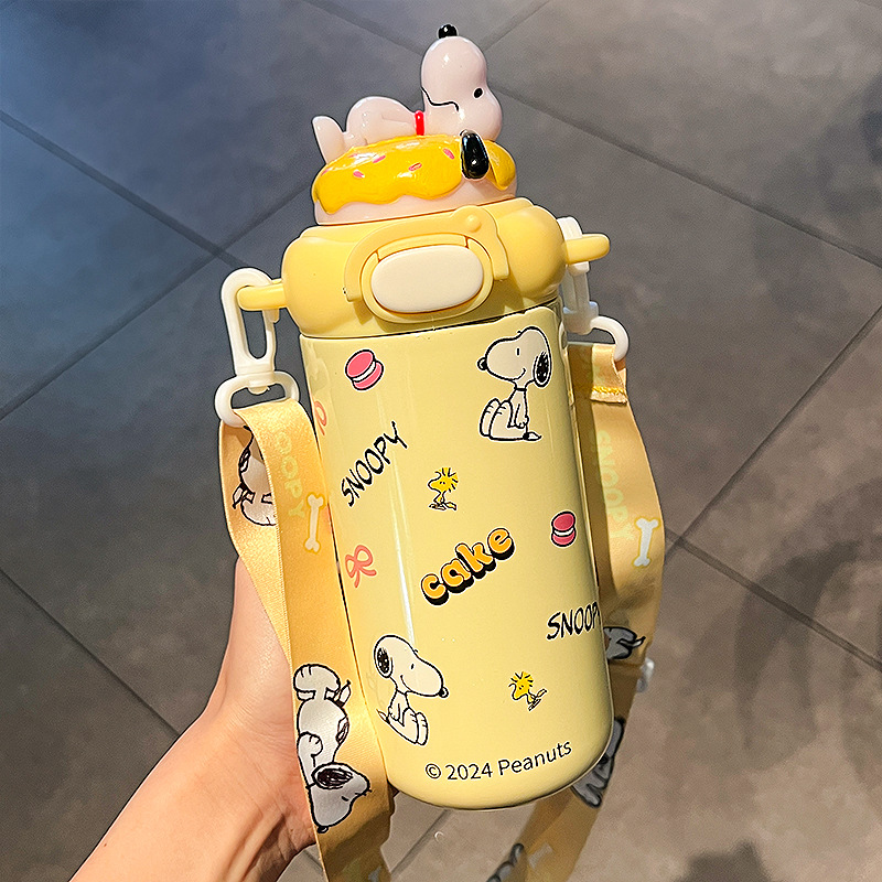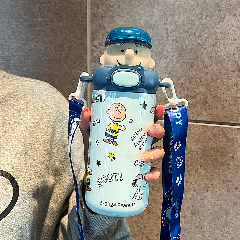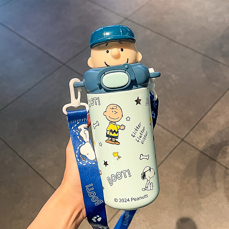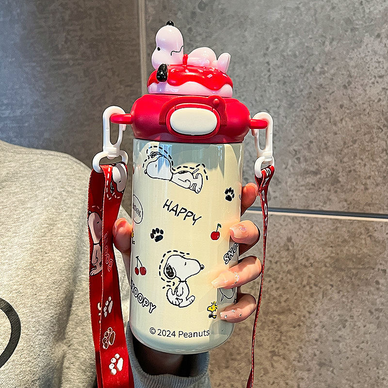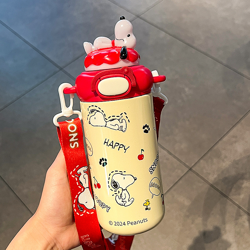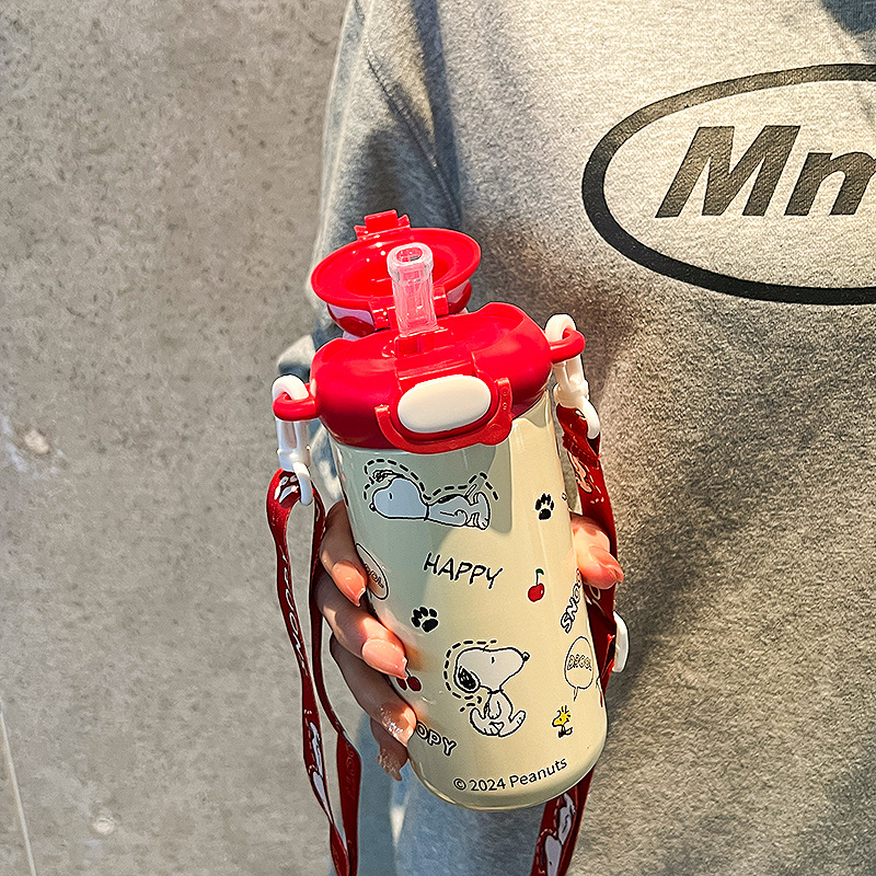 史努比儿童保温杯男女孩水杯新款吸管杯子小学生上学专用水壶
