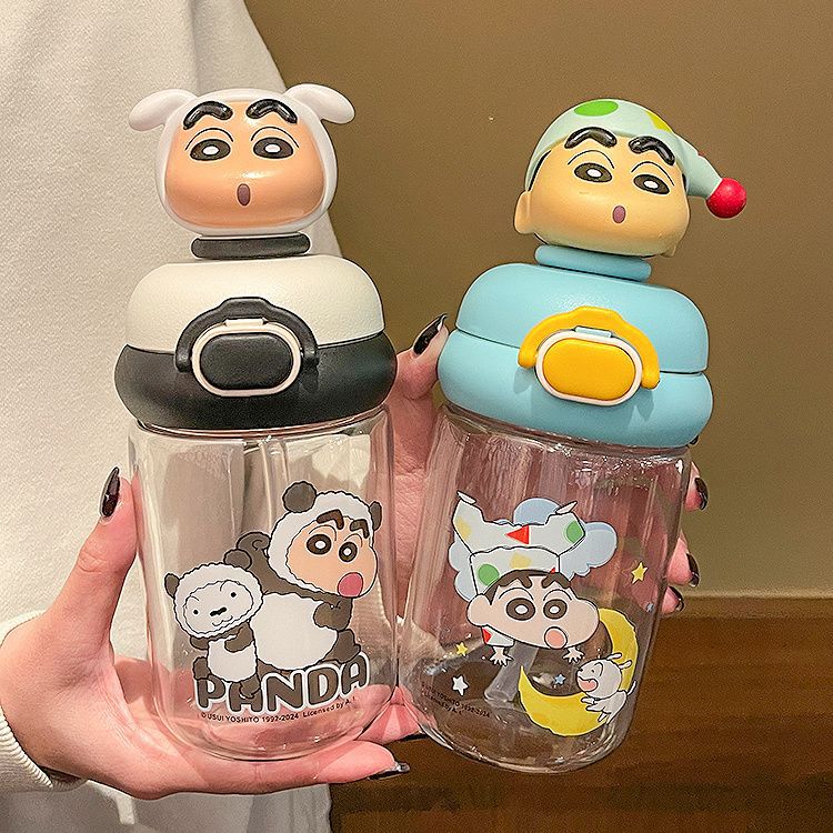 夏季高颜值蜡笔小新女生儿童水杯tritan可爱水壶学生吸管杯子
