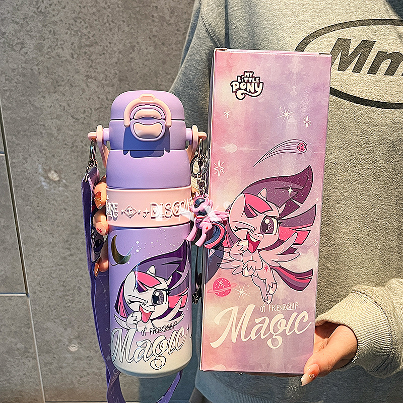 小马宝莉儿童背带水壶卡通可爱保温杯不锈钢水杯女双饮杯生日礼物